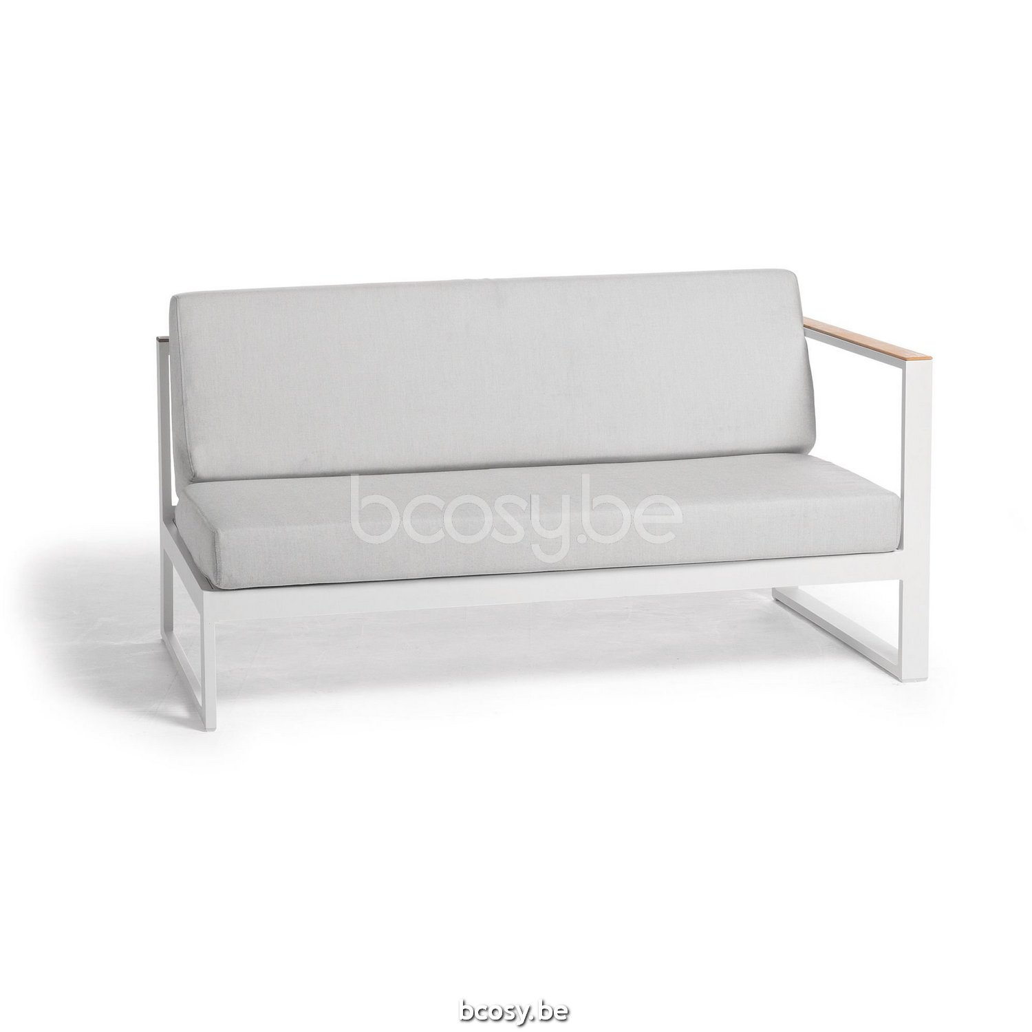 Adviesprijs is voor Diphano Landscape Modular dubbele zetel links met teak armsteun Aluminium Wit Frame Stof All Weather Shine Armleuningen in Naturel Teak (2777 /pc)