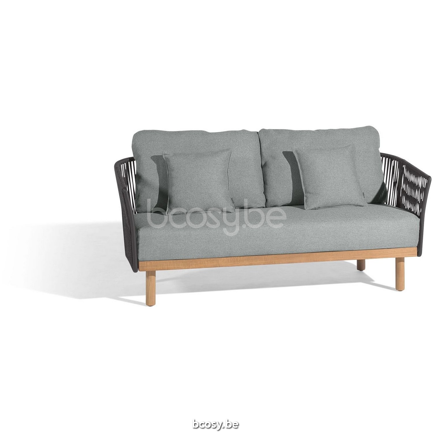 English: Diphano Newport 2-seater Aluminium Lava Frame Rope Charcoal 11mm (1851 /pc) + 1 pc Diphano Newport cushion set 2-seater (1x seat + 2x back + 2x deco) Weatherproof Smoke Fabric (1083 /pc)