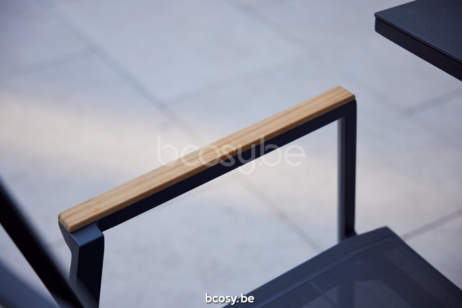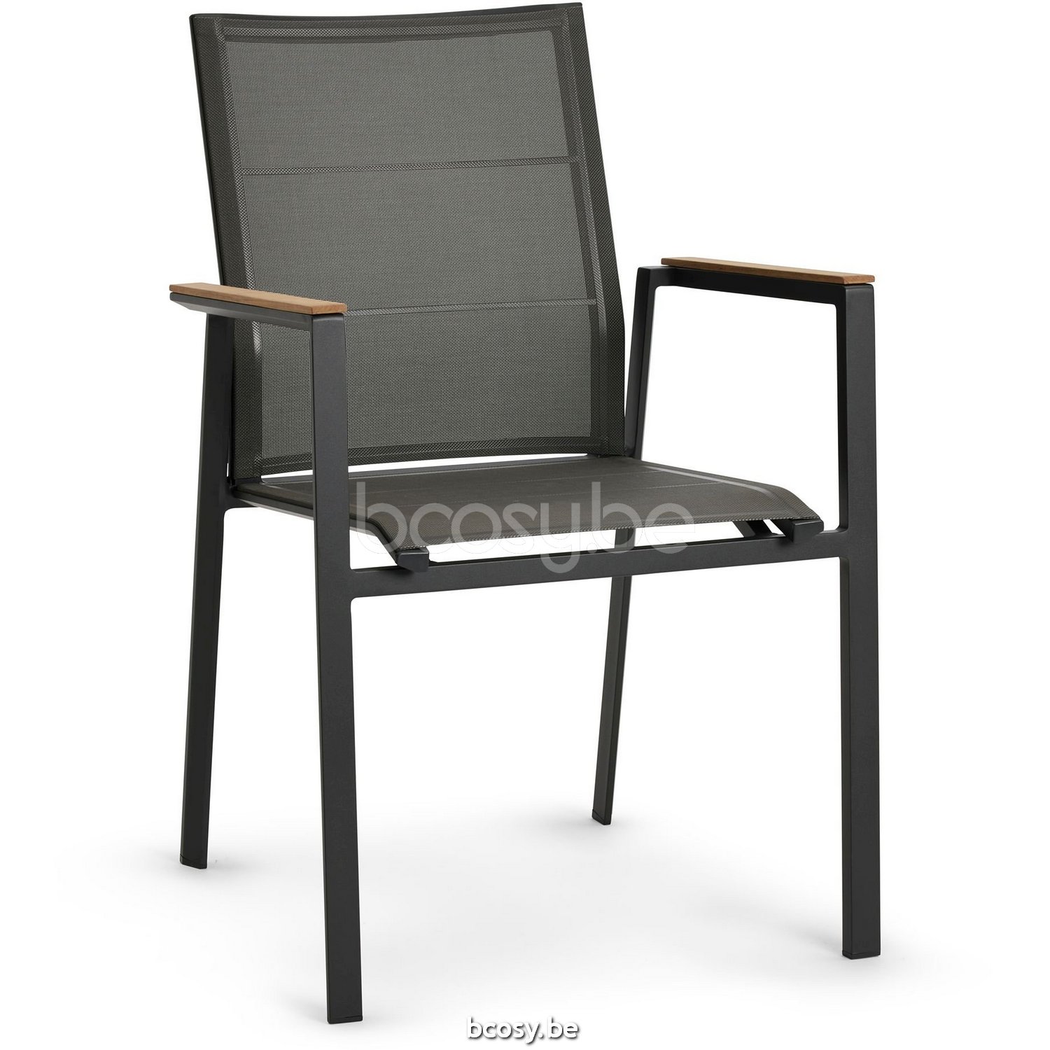 Français: Diphano Selecta Chaise de jardin empilable avec accoudoir en teck Cadre Aluminium Lava Tissu Couche unique Batyline Cafe Accoudoirs en Teck naturel (333 /pc)