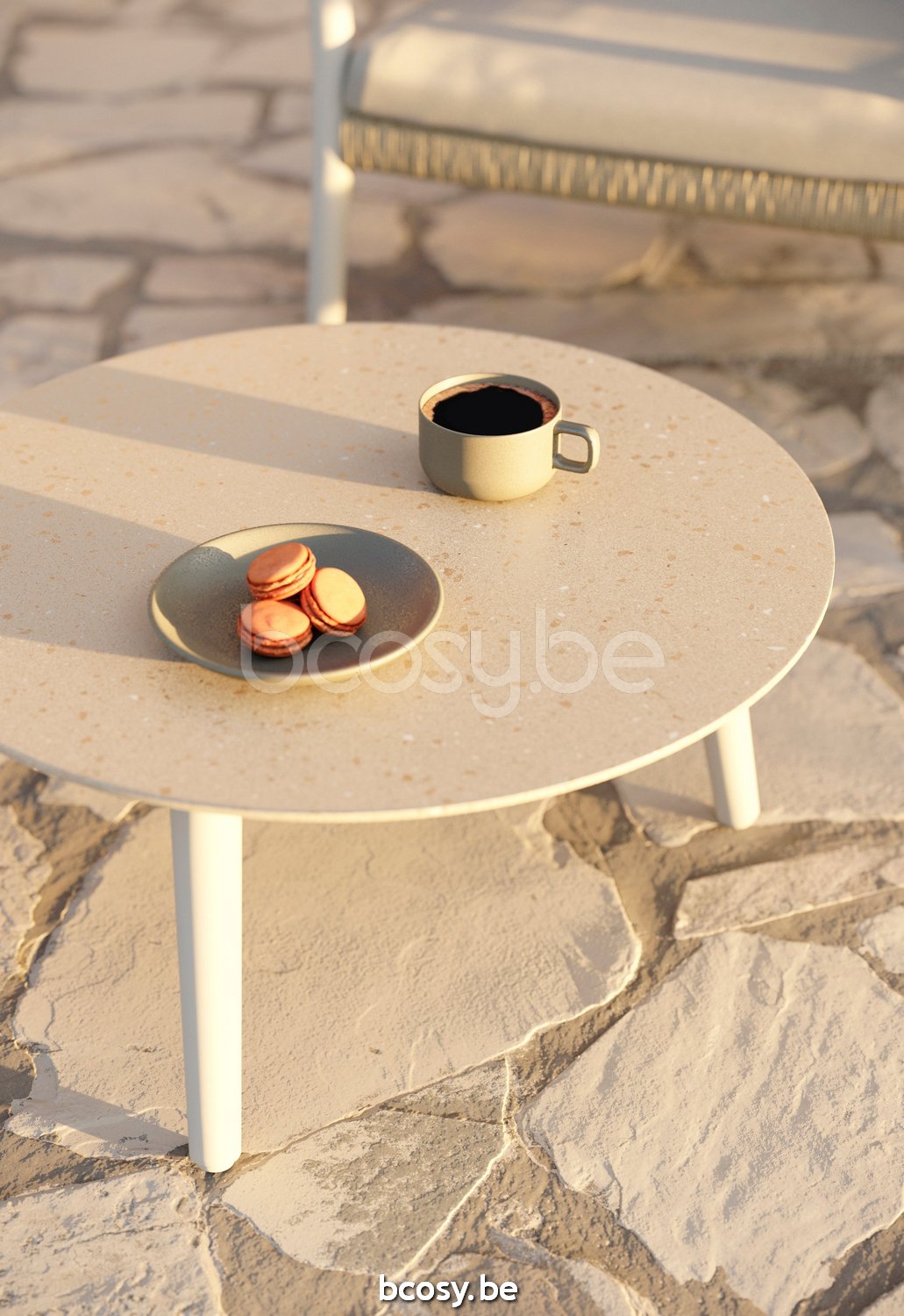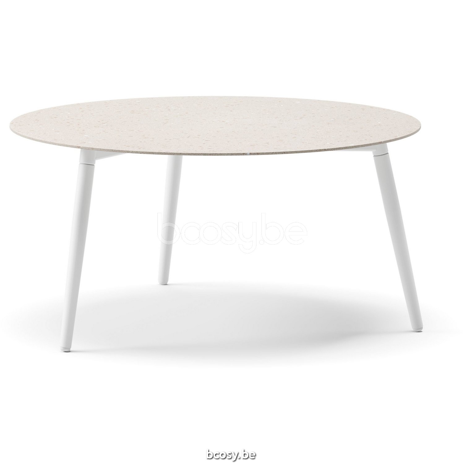Français: Diphano Ray table basse S 80xR (35,5h) Cadre Aluminium blanc Dessus Céramique Sable 9 mm imposé (938 /pc)