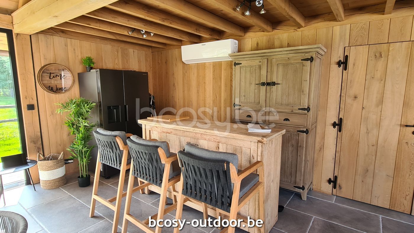 Bcosy heeft ook een ruime poolhousebar. Deze bar in je houten bijgebouw heeft ook de nodige opbergruimte achteraan en lades. Ook andere modellen te bestellen bij Bcosy.