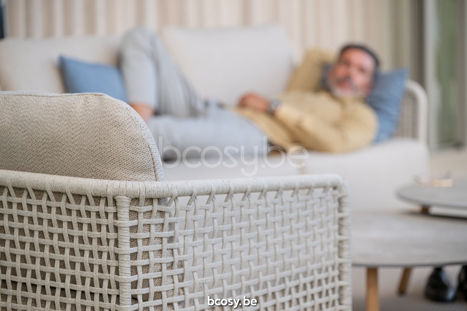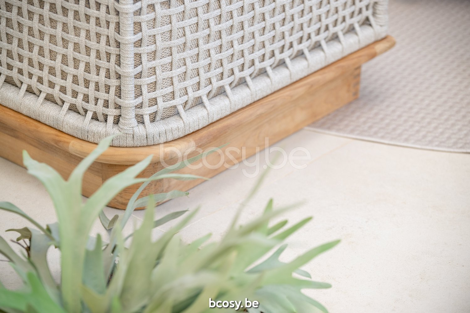 Jati-Kebon Acri Teak Sofa 2Seat Teak Natural Smooth Texteline Beige White Rope Linnen 14mm Open Weaving
