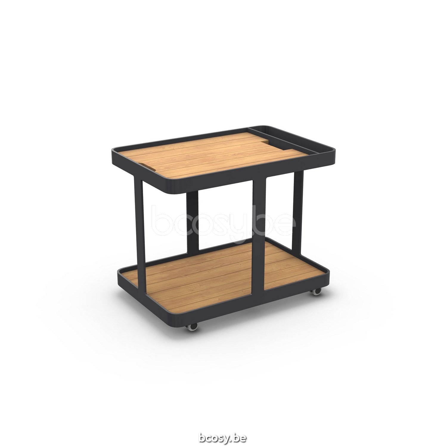Jati Kebon Baguta Trolley Antraciet mat aluminium Tafelblad Teak (1499 /pc)