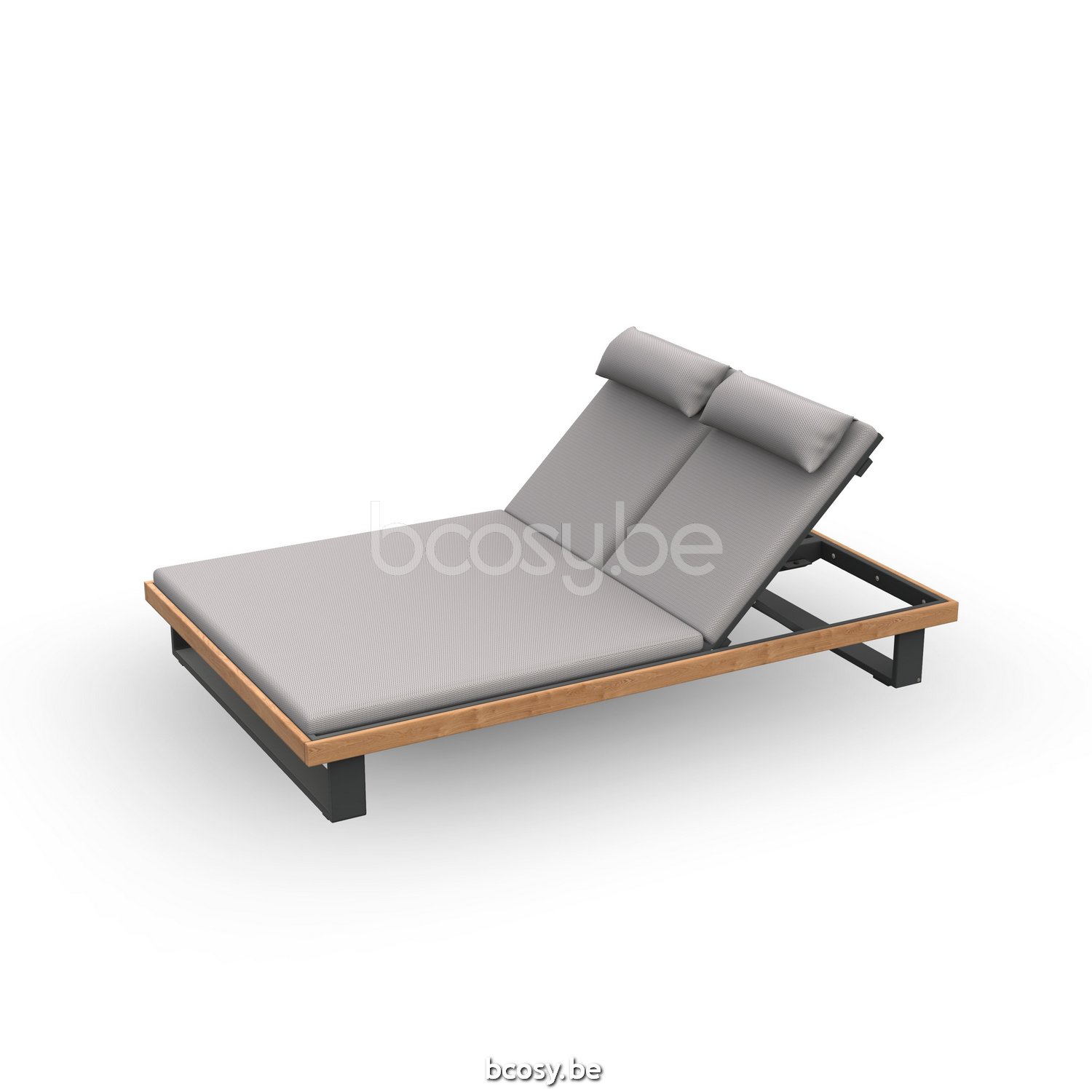 Jati-Kebon Truro Sunlounger Double Alu Charcoal Mat Teak Natural Smooth