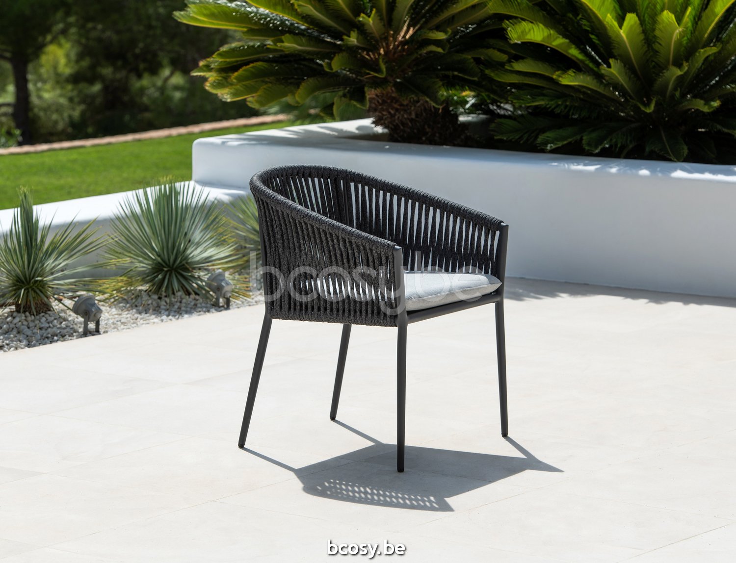 English: Jati-Kebon Fortuna Rope Arm chair Sunbrella natte grey chine nat 10022 quick dry foam Charcoal mat aluminium Rope Charcoal (499 /pc)