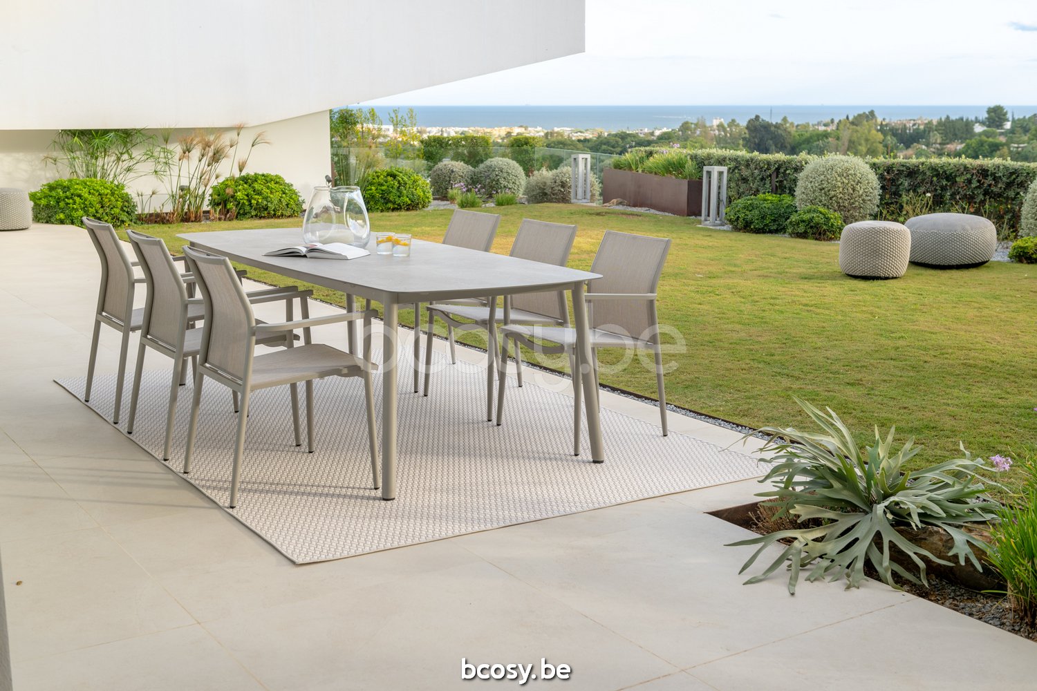 Serie: Jati Kebon Durham rechthoekige tuintafels in aluminium en keramisch tafelblad