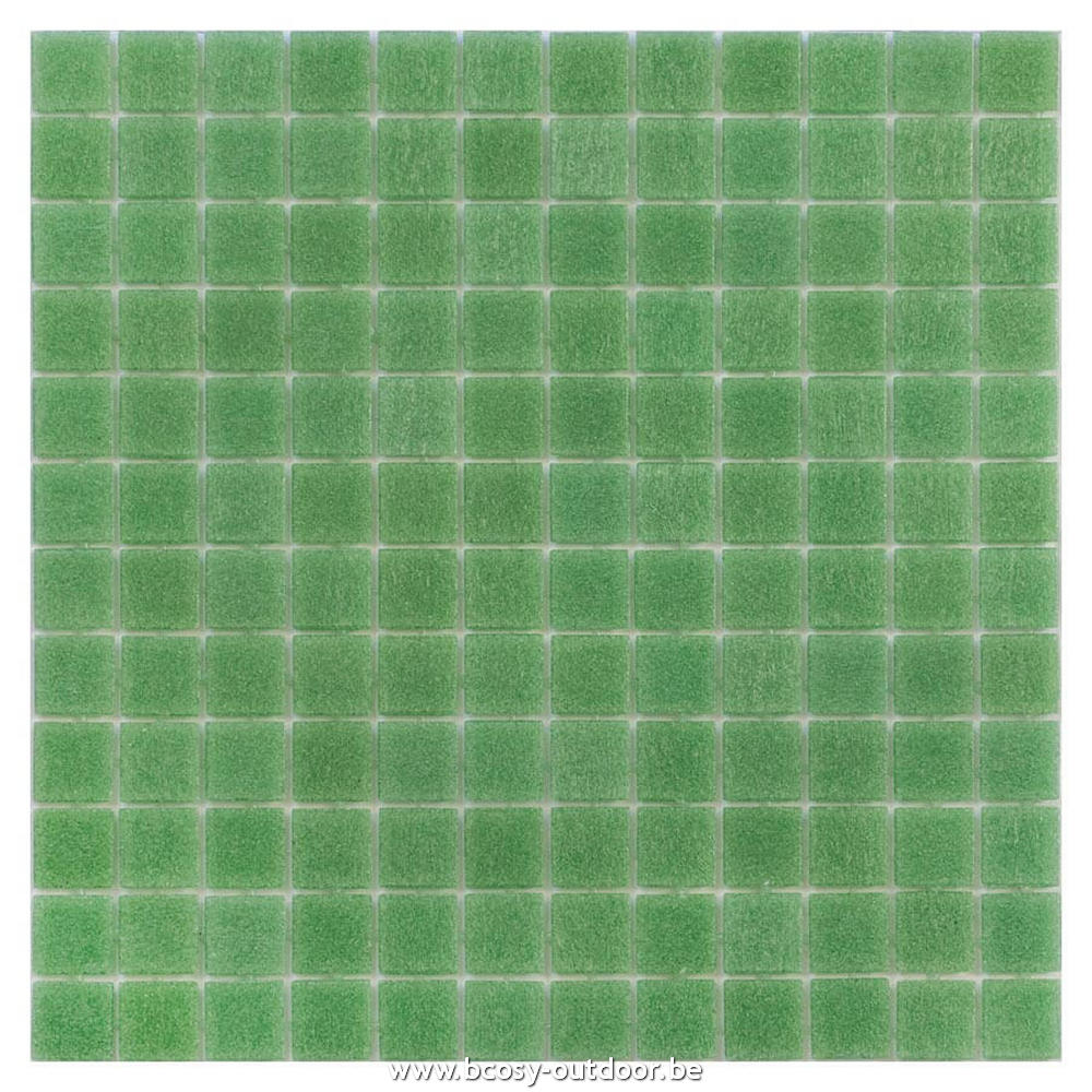 Aquacolor Turvo glasmozaïek zonder netjes ideaal voor zwembaden wegens de betere hechting, kleur groen, chip formaat 25x25x4 mm op net van 300×300 mm.