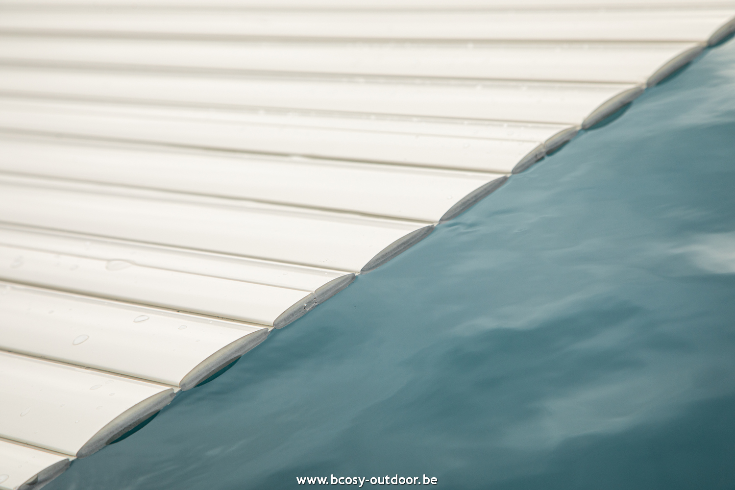 De volle lamellen laten de Covrex® Classic rolluiken toe om de warmte in het zwembad te houden. Ze bieden eigenlijk een ongelooflijke isolatie coëfficiënt 4,85 W/(m².K). De Covrex® Classic lamellen laten u toe om langer in het seizoen van uw zwembad te genieten en het warmteverlies te minimaliseren tijdens de nachten en de koudste dagen. Waarin is de isolatie van de Covrex® Classic afdekking beter dan die van andere zwembadrolluiken op de markt? Alle traditionele zwembad rolluiken zijn samengesteld uit lamellen of holle kamers, die zich met vochtige lucht vullen. Deze vochtige lucht vermindert sterk de isolatiewaarde. Bovendien zijn deze traditionele holle lamellen met elkaar verbonden door scharnieren, die bijkomend warmteverlies veroorzaken.