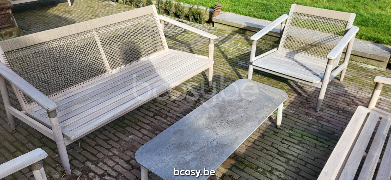 Français: Vincent Sheppard David Canapé lounge 3s Cadre en Teck Vieilli Corde Gris Polypropylène