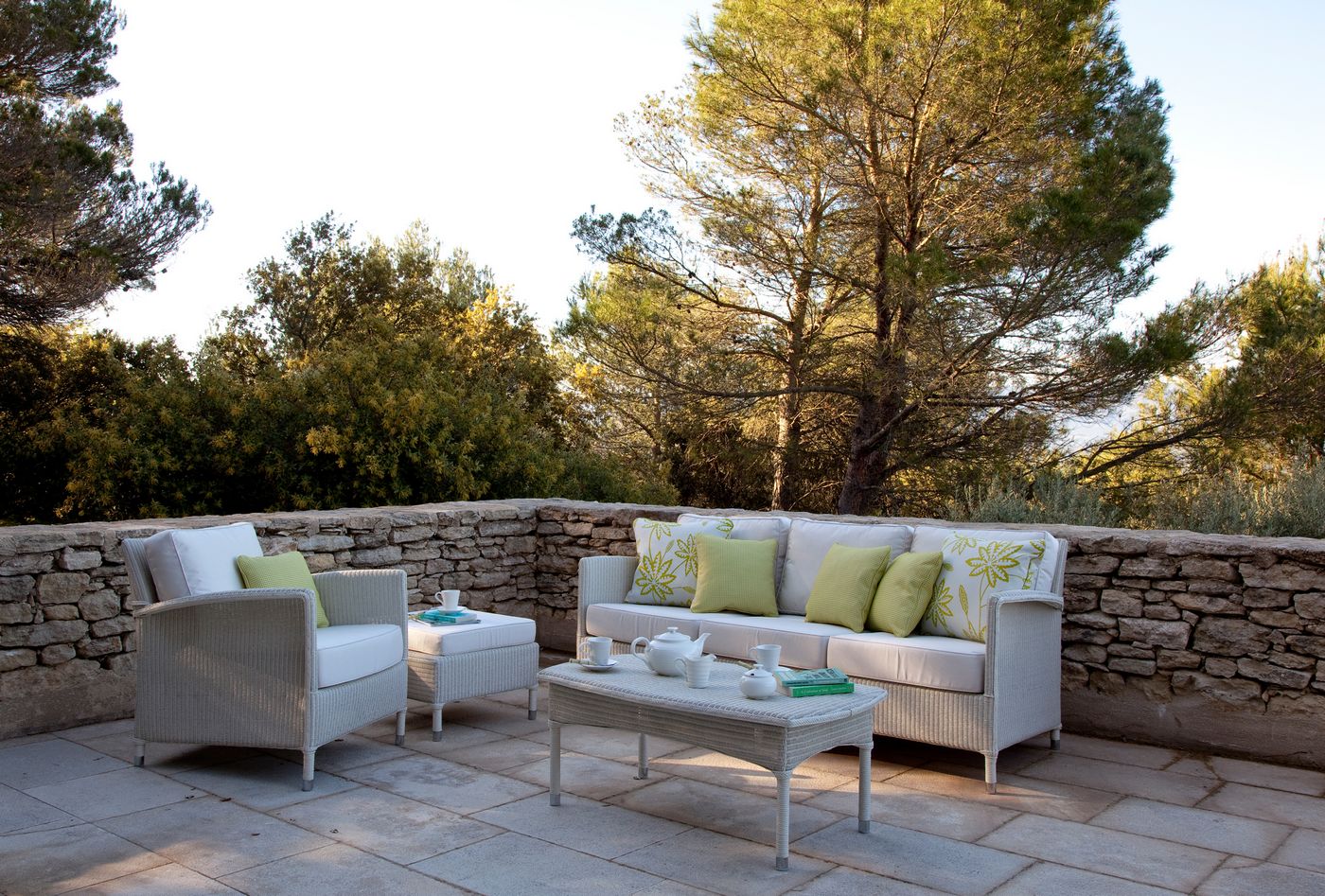 Matériel: Lloyd Loom traité pour une utilisation en extérieur sur un cadre en aluminium. Doit être stocké à l'intérieur par temps humide et froid. Mais ne convient qu'aux climats secs.