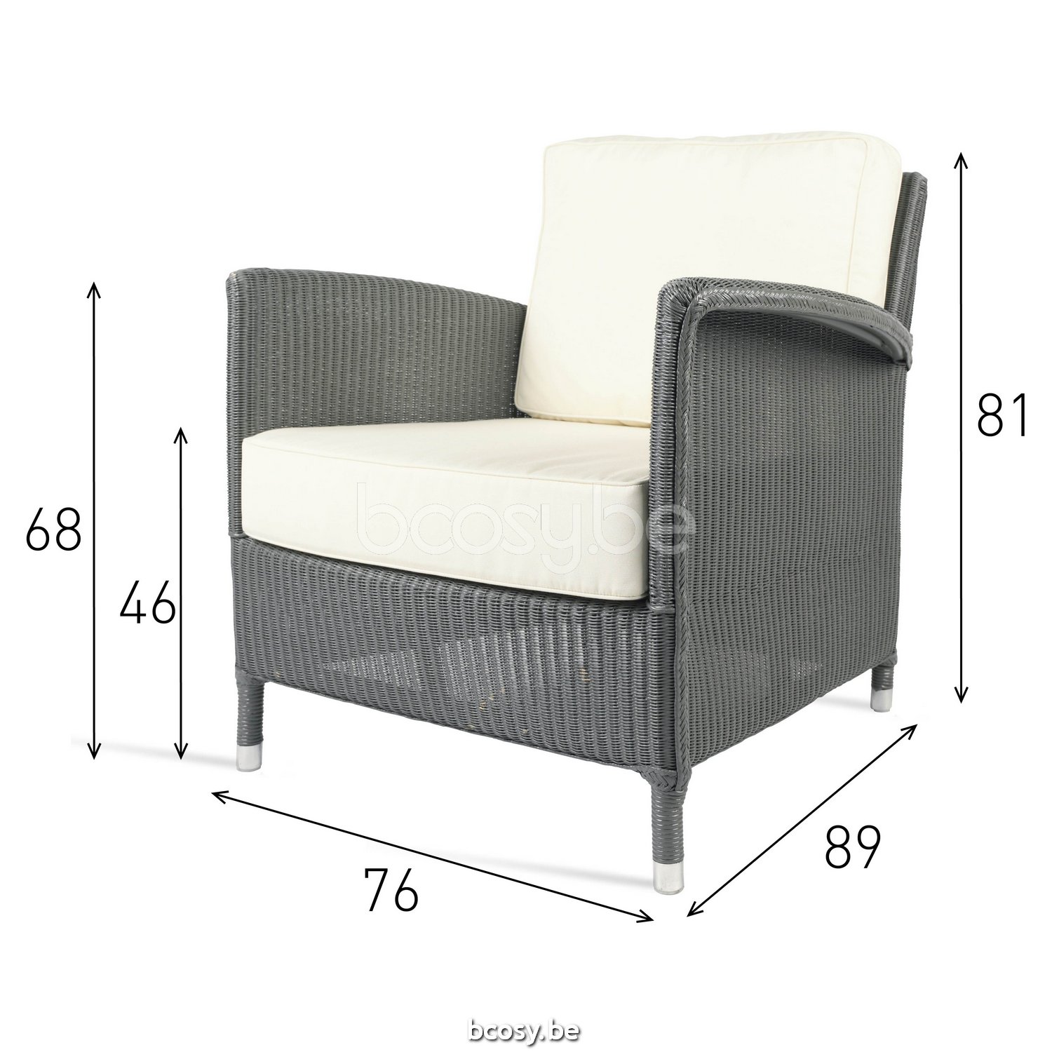 Afmetingen/Dimensions/Dimensionen: L=76 cm B=89 cm H=81 cm SH=46 cm AH=68 cm