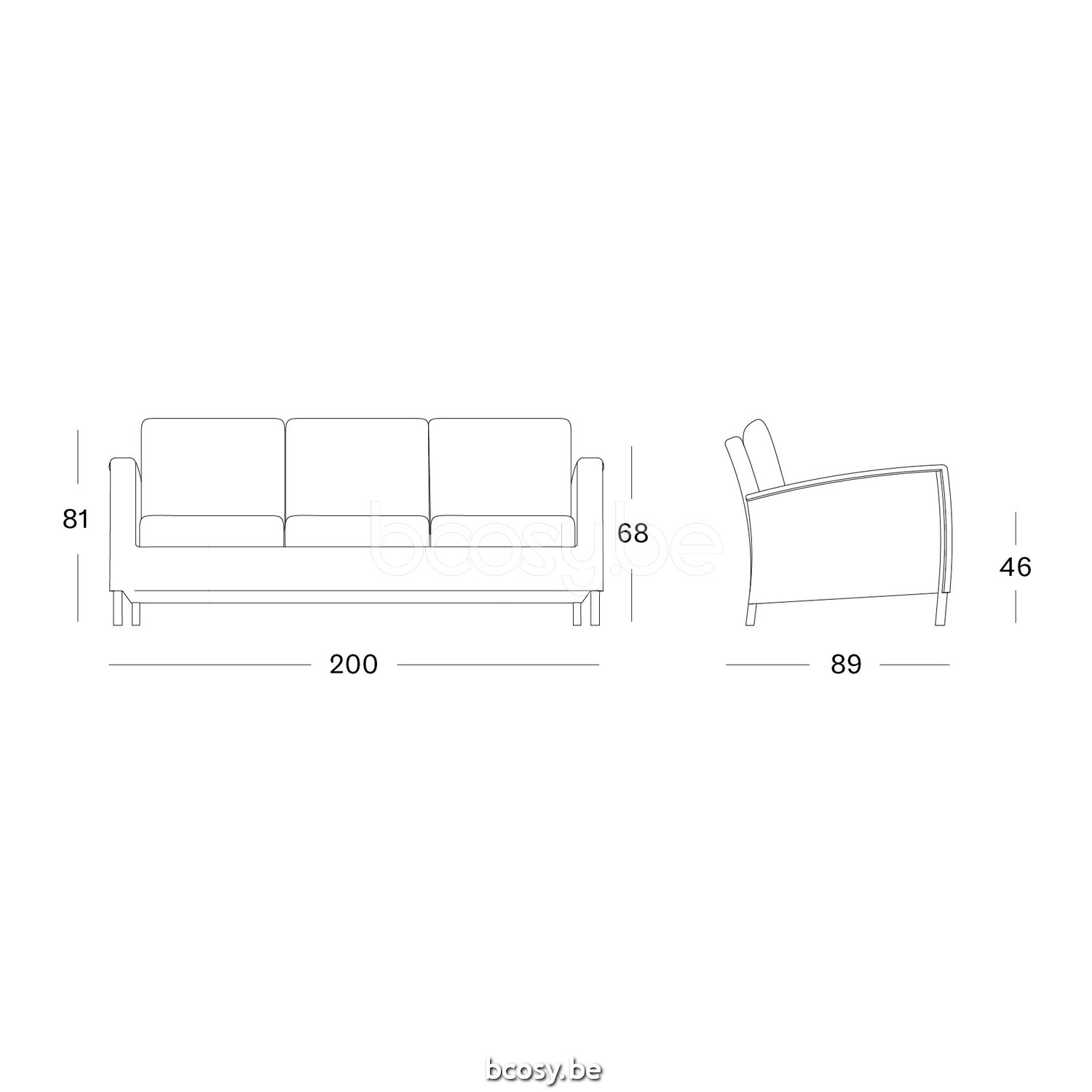 Afmetingen/Dimensions/Dimensionen: L=200 cm B=89 cm H=81 cm SH=46 cm AH=68 cm