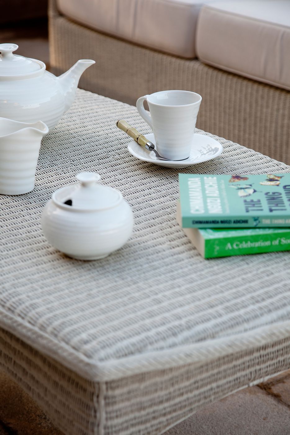 English: Vincent Sheppard Dovile Garden Coffee Table 106x60 Snow Lloyd Loom
