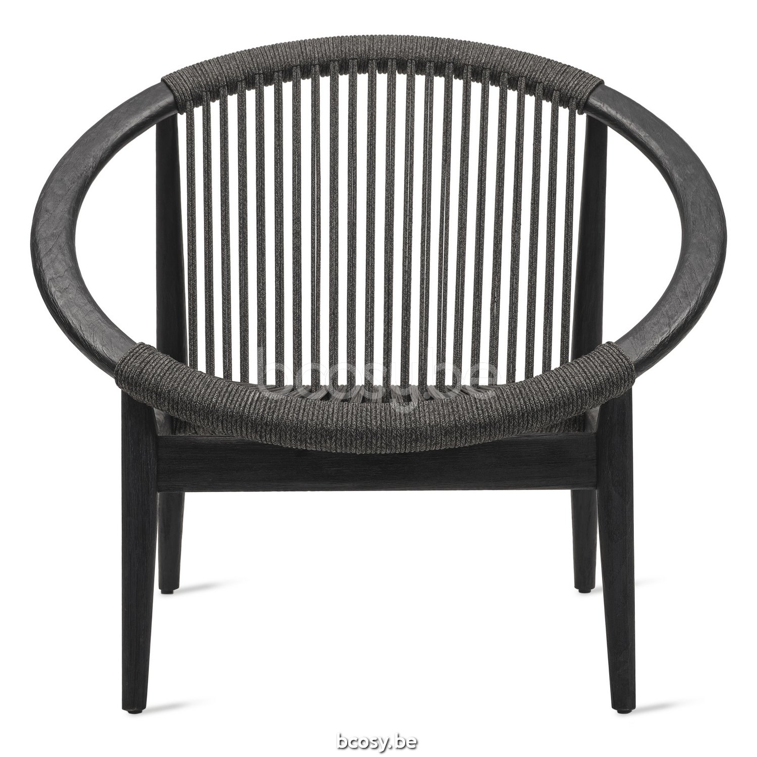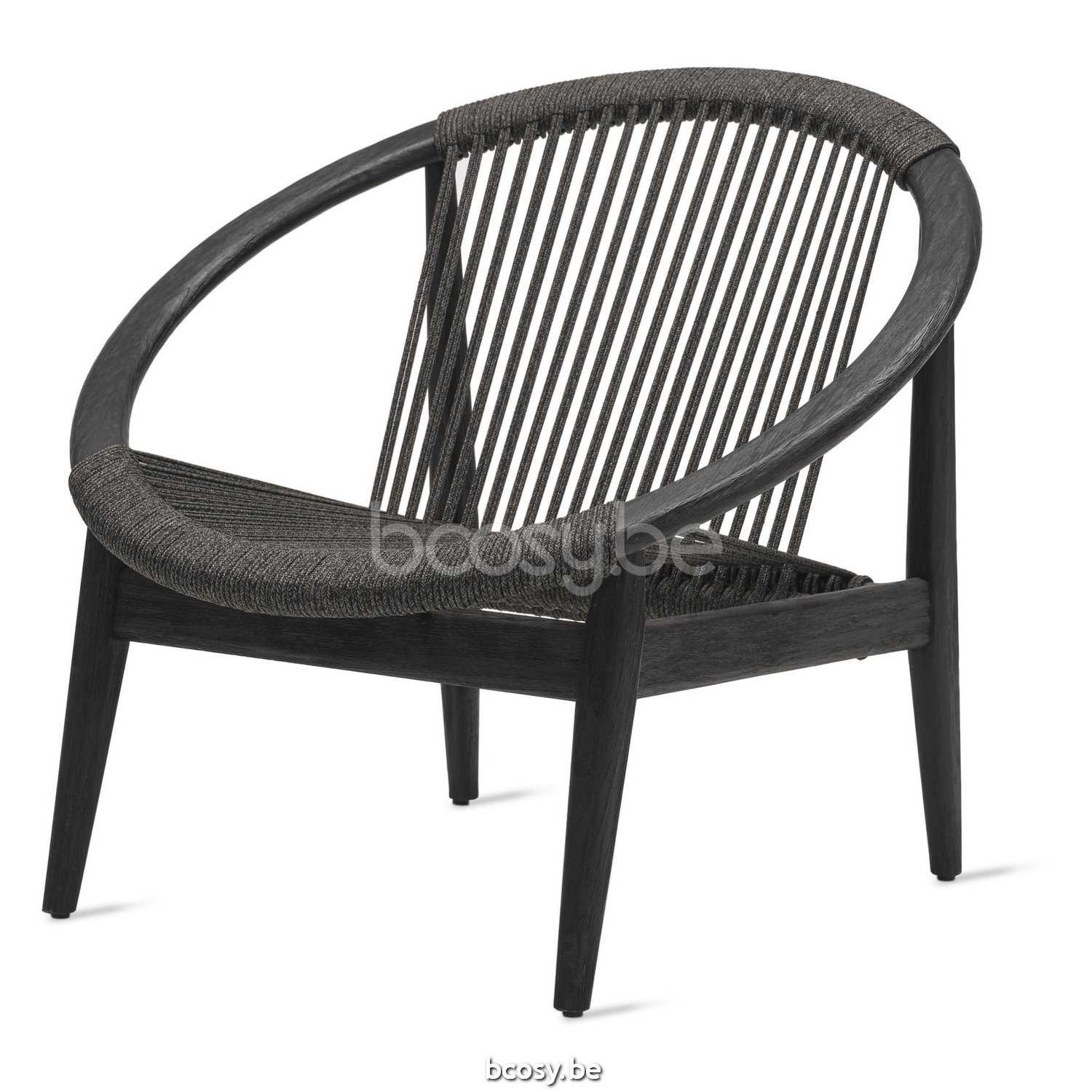 English: Vincent Sheppard Frida Lounge Chair Brushed Black Teak frame Onyx Black Rope Polypropylene