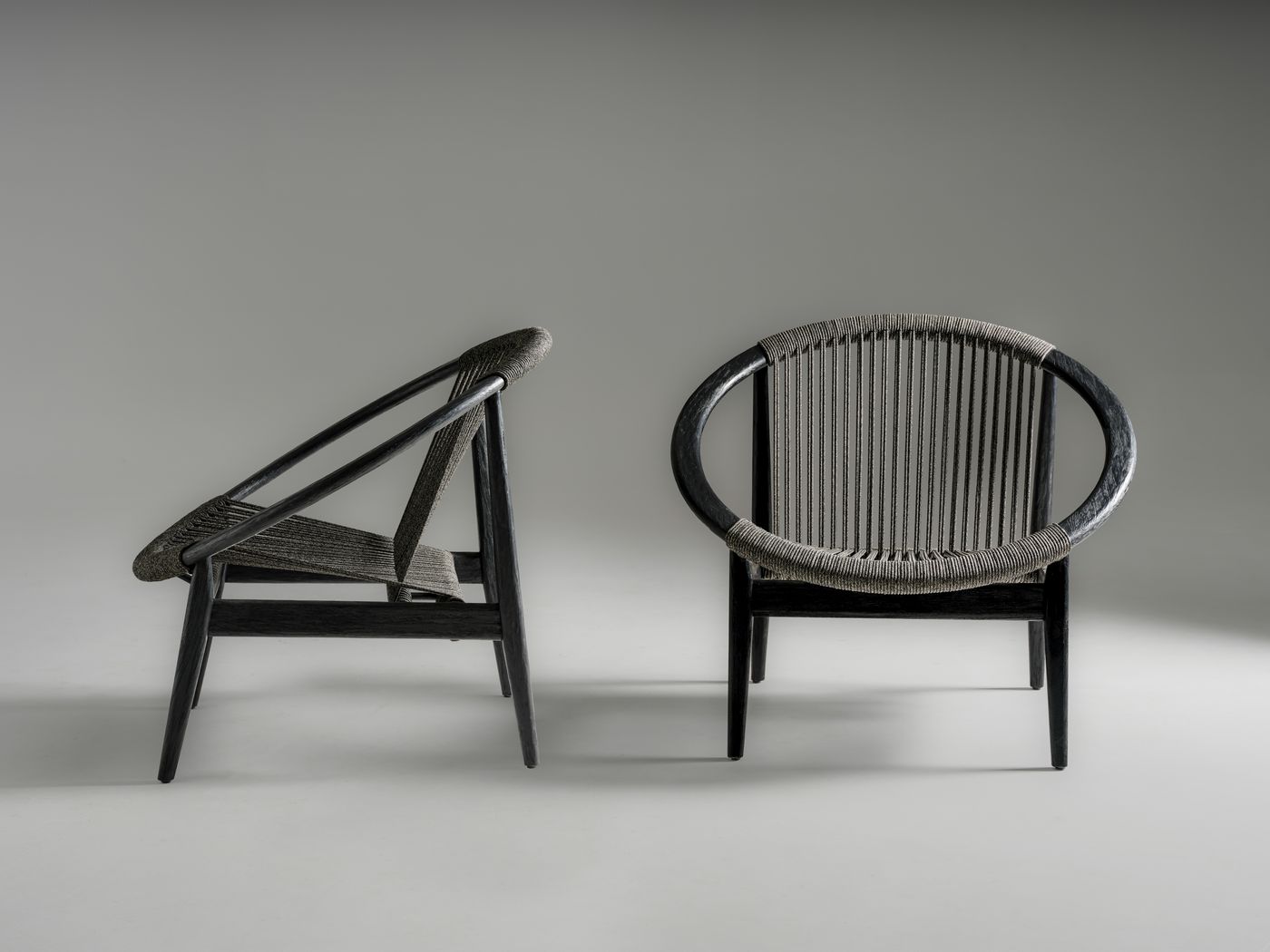 Deutsch: Vincent Sheppard Frida Lounge Stuhl Rahmen aus Gebürstetes Schwarz Teakholz Onyx Schwarz Seil Polypropylen