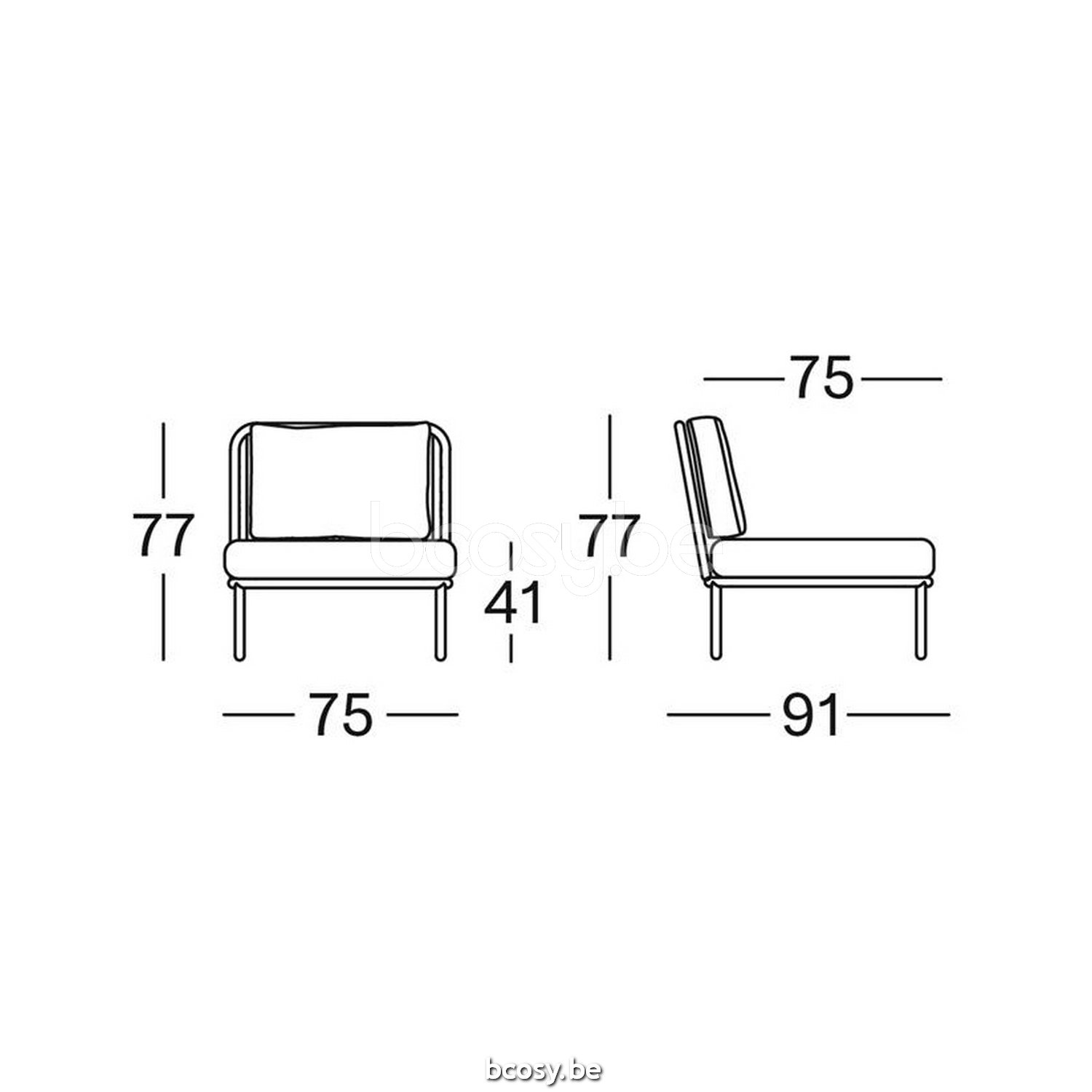Afmetingen/Dimensions/Dimensionen: L=75 cm B=91 cm H=77 cm SH=41 cm