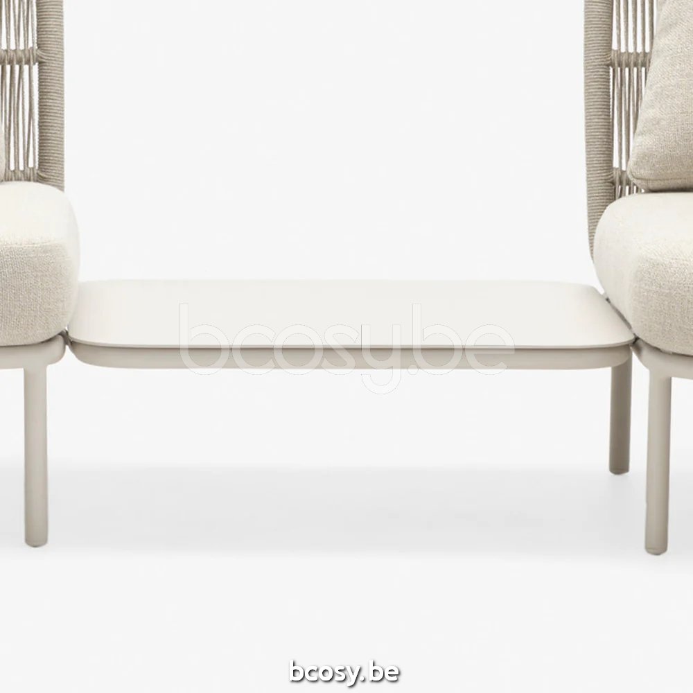 Materiaal: Aluminium zijtafel met poedercoating tussen de modules.