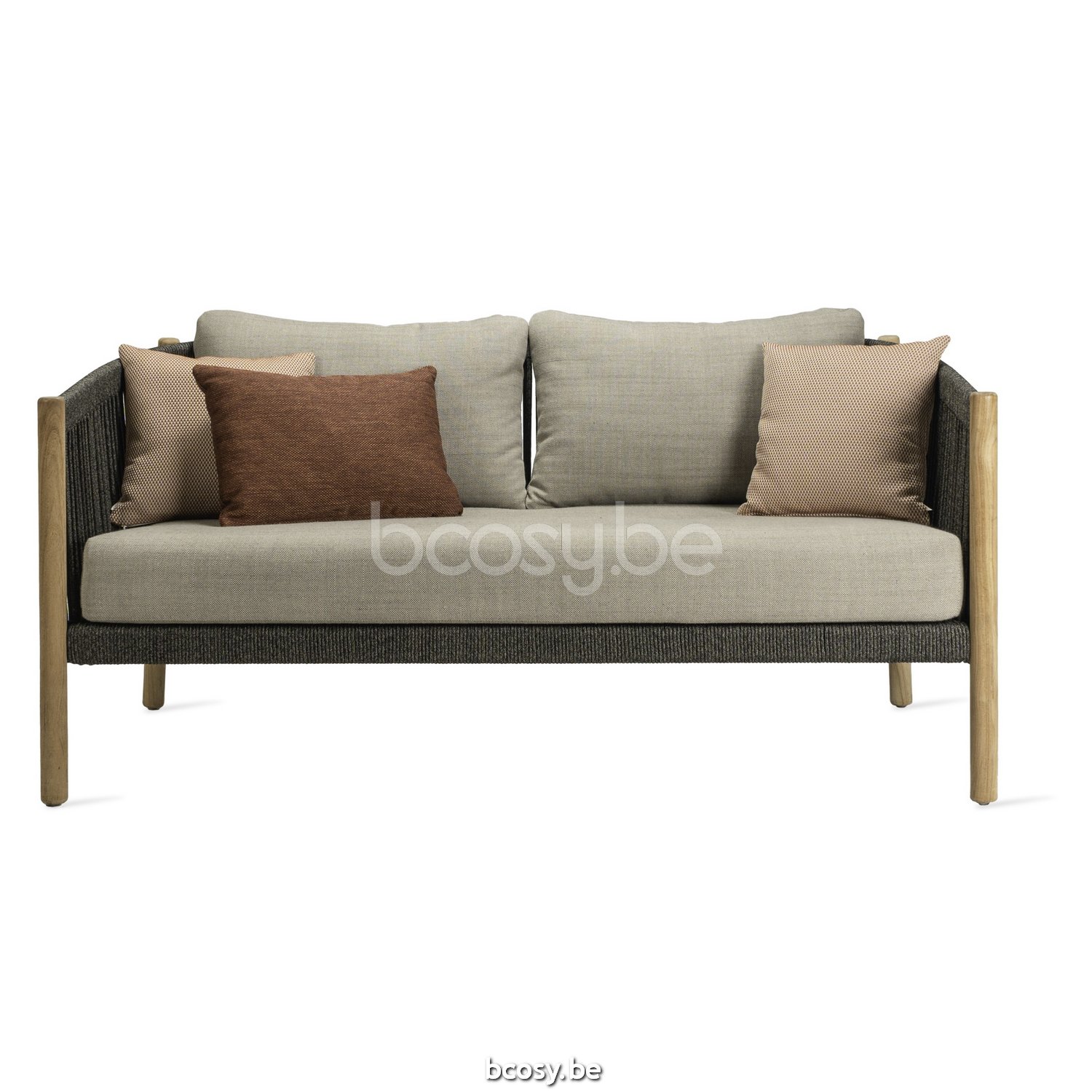 Vincent Sheppard Canapé de jardin LENTO Lento Canapé lounge 2.5s Cadre en Teck non traité Corde Anthracite-Charbon Polypropylène