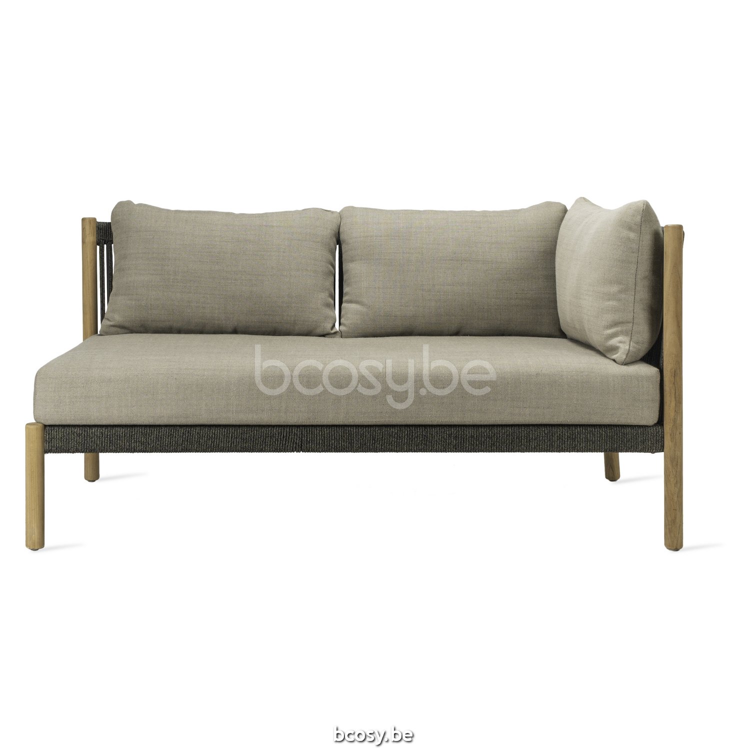 Français: Vincent Sheppard Lento Coin modulaire gauche Cadre en Teck non traité Corde Anthracite-Charbon Polypropylène