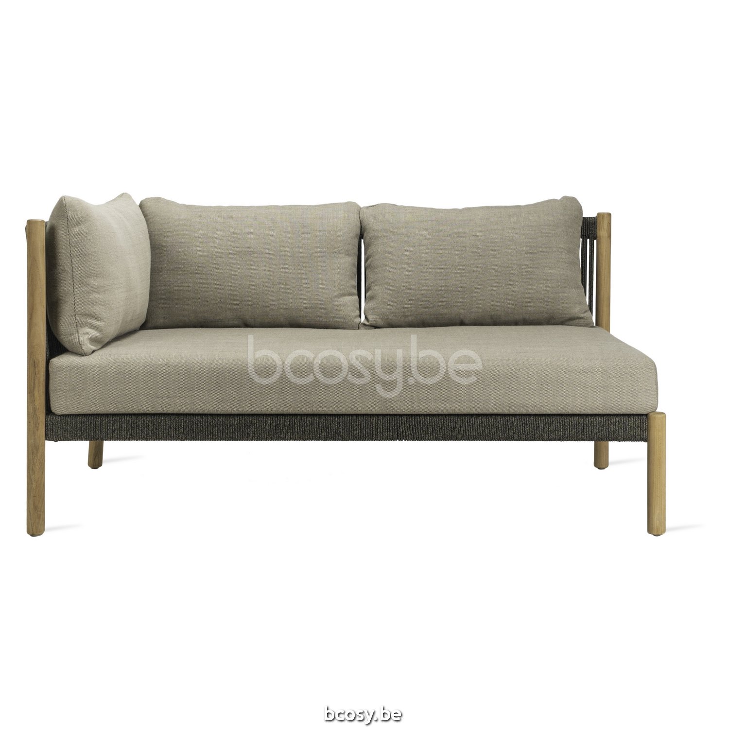 Français: Vincent Sheppard Lento Coin modulaire droit Cadre en Teck non traité Corde Anthracite-Charbon Polypropylène