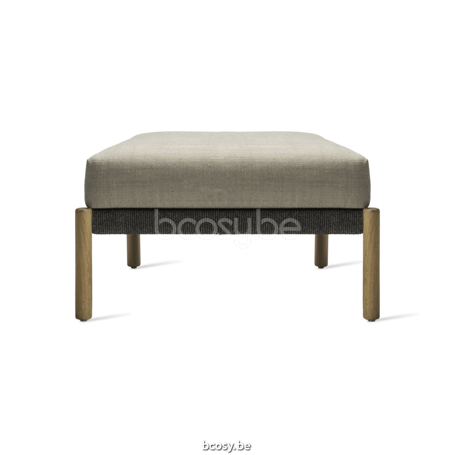 English: Vincent Sheppard Lento Modular Ottoman Untreated Teak frame Anthracite-charcoal Rope Polypropylene