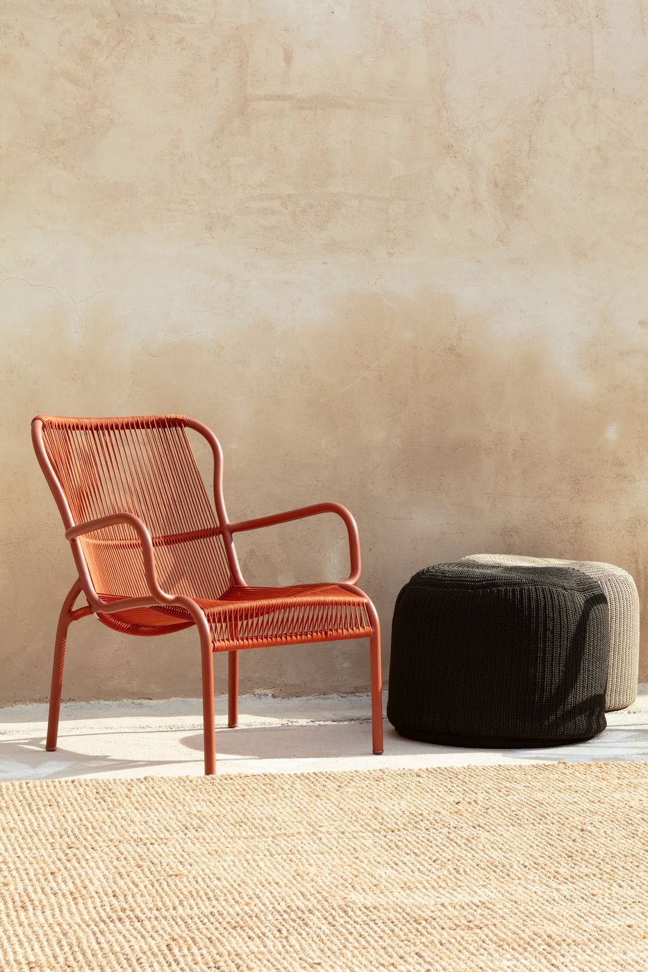 Vincent Sheppard LOOP Rope Loungestuhl Loop Lounge Stuhl Rahmen aus Terrakotta Aluminium Terrakotta Gehäkelte Kordel Polypropylen