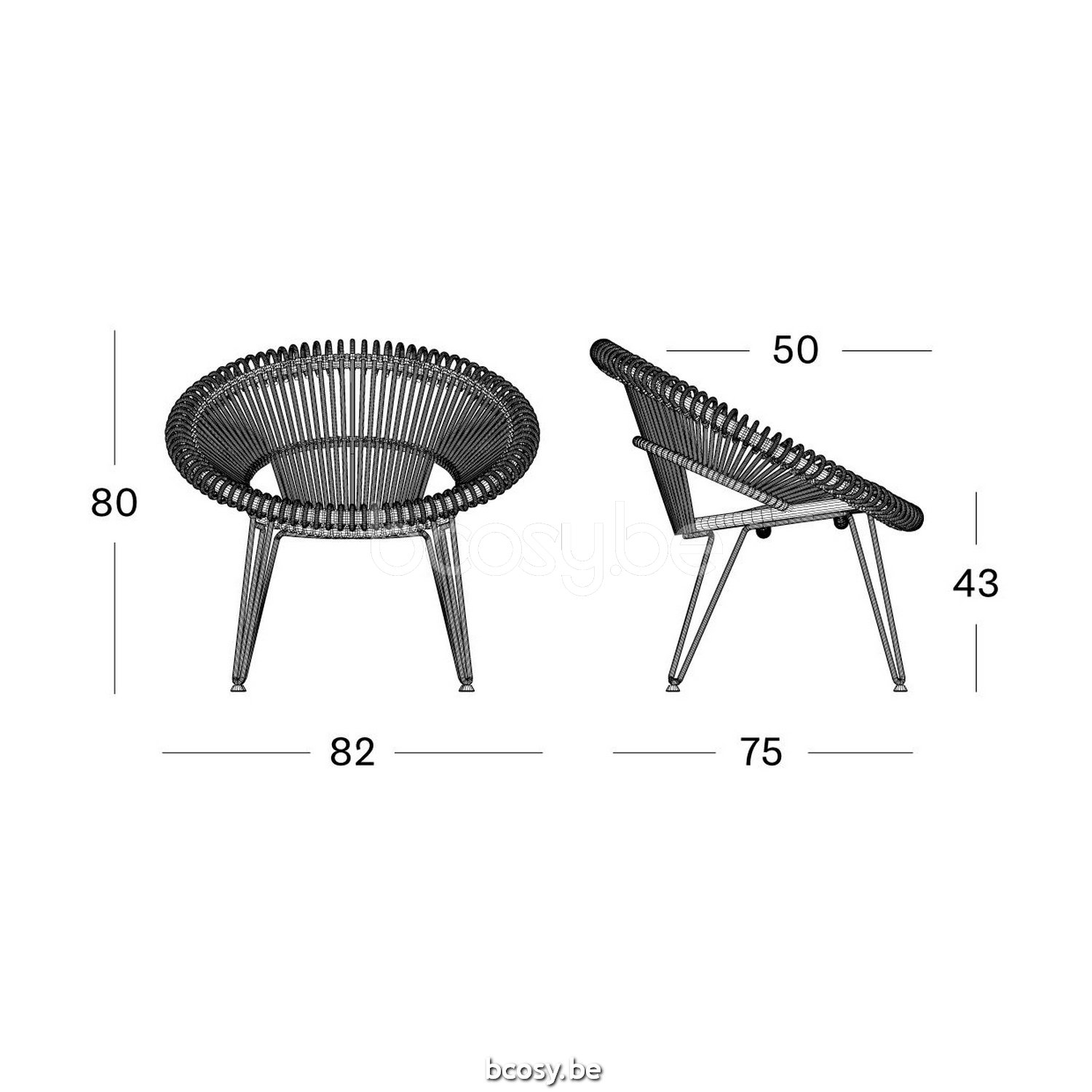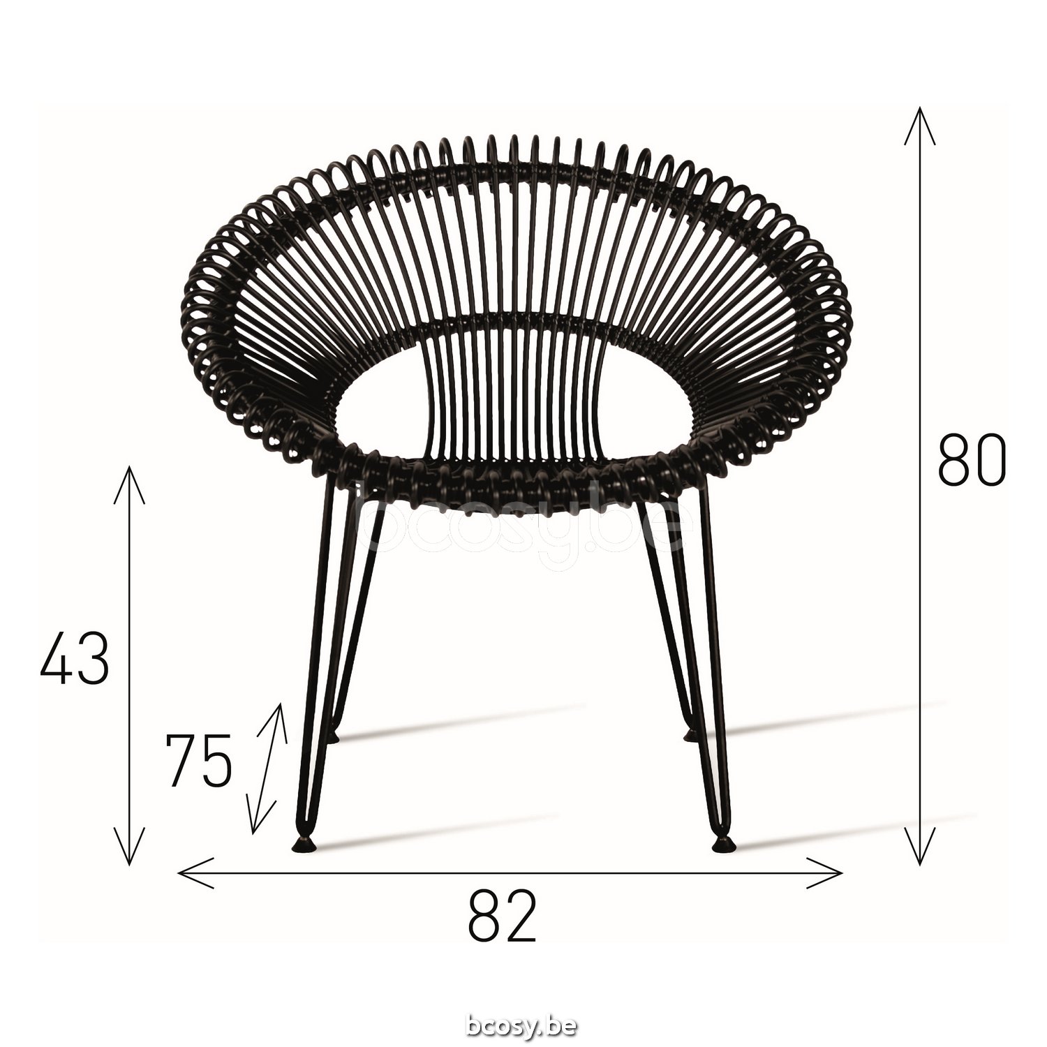 Afmetingen/Dimensions/Dimensionen: L=82 cm B=75 cm H=80 cm SH=43 cm