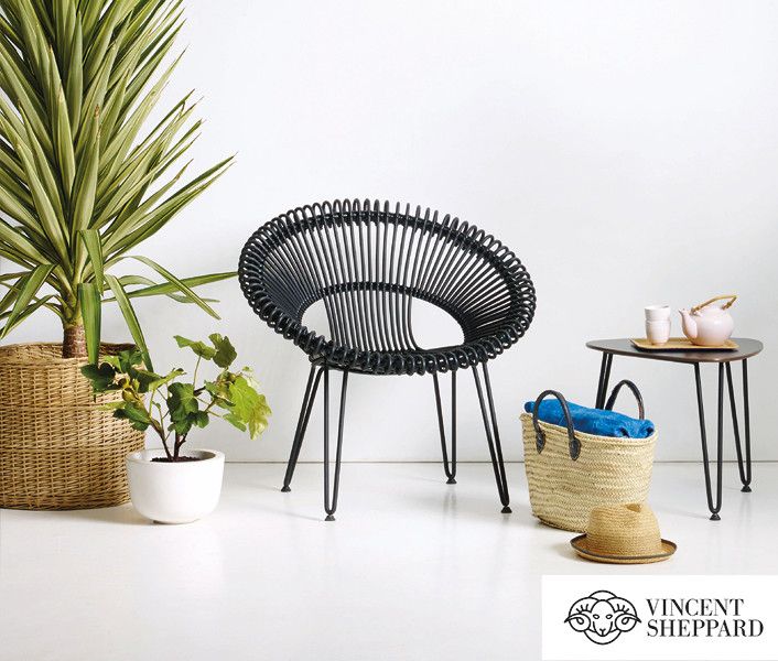 Vincent Sheppard Roy Lazy Stoel Zwart Stalen frame Zwart Wicker koord Polyethyleen. Vincent Sheppard Roi Lazy Stoel Zwart Stalen frame Zwart Wicker koord Polyethyleen