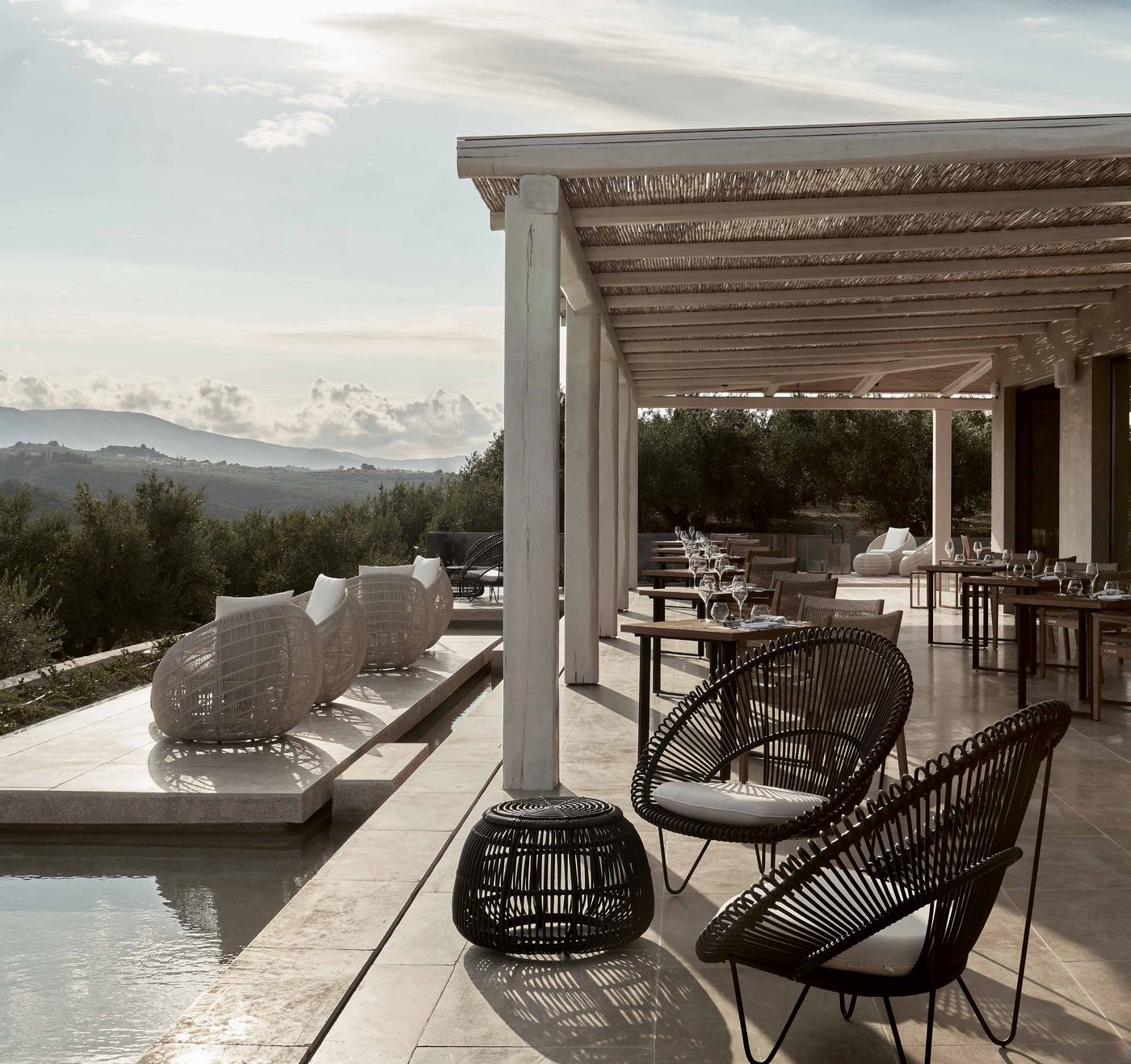 Material: Polyethylene wicker on an aluminium frame with an epoxy and black powder coated steel frame.