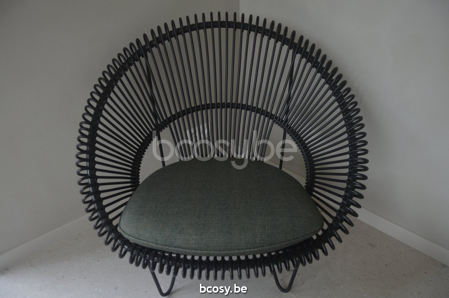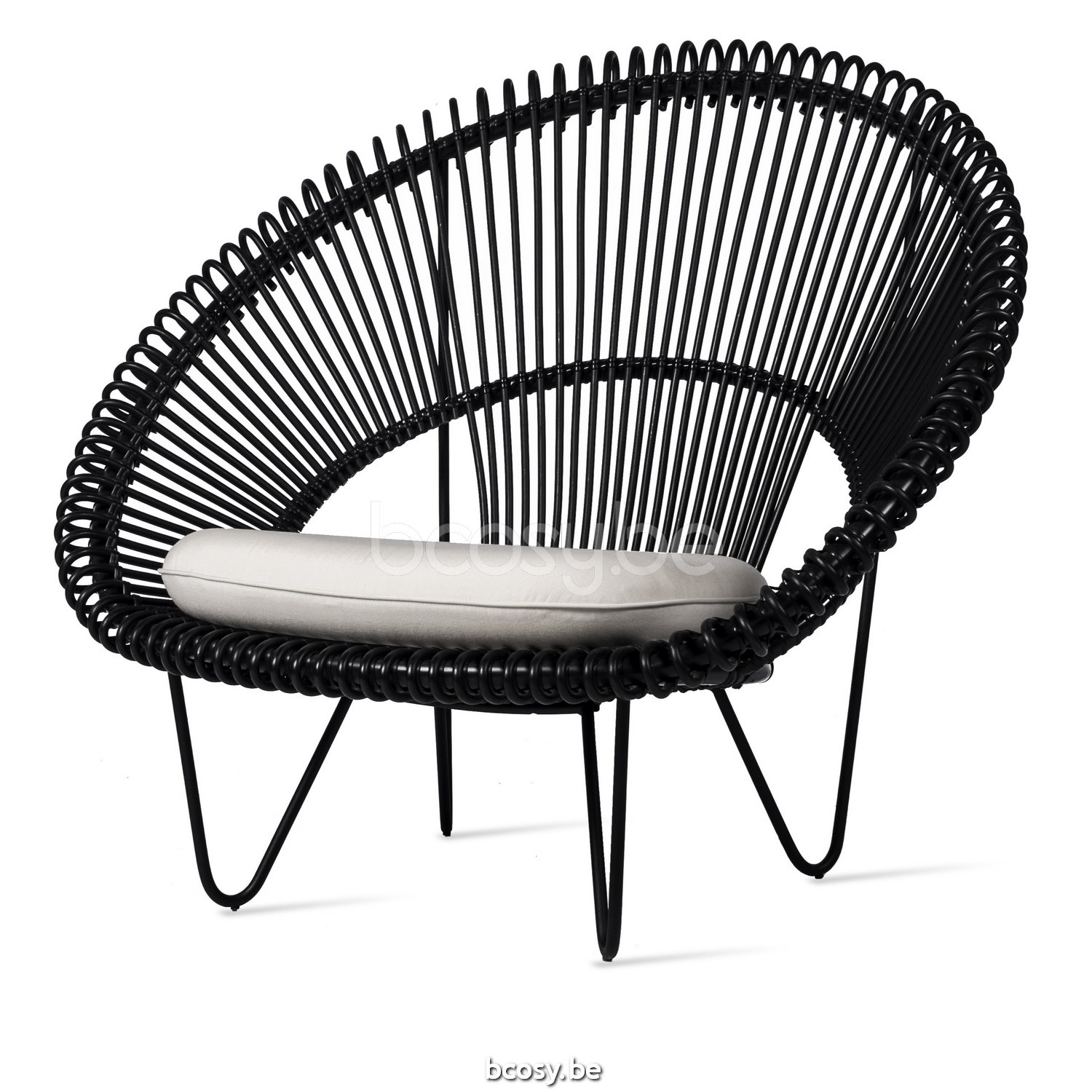 English: Vincent Sheppard Roy Cocoon Black Steel frame Black Wicker-rope Polyethylene