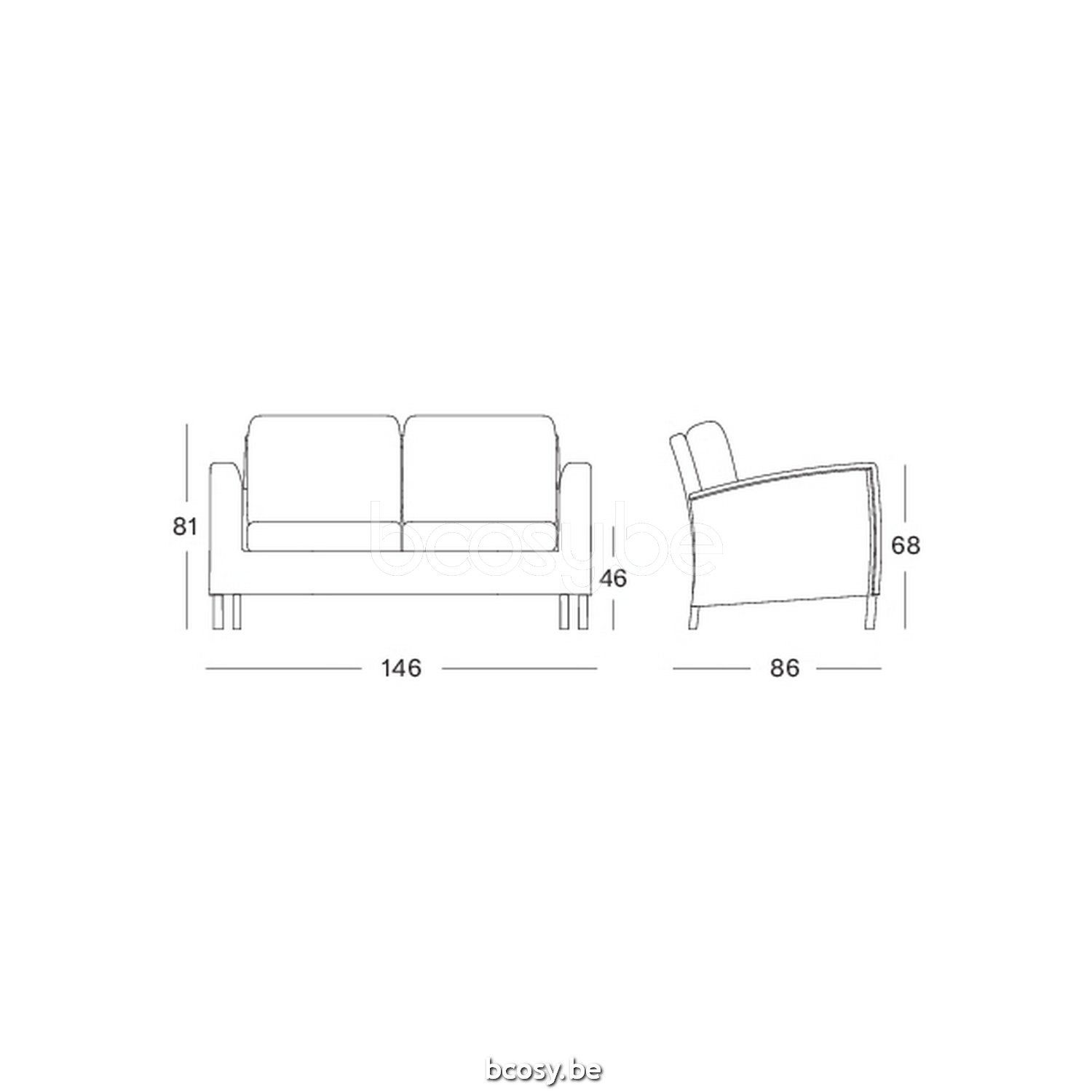 Afmetingen/Dimensions/Dimensionen: L=198 cm B=86 cm H=81 cm SH=46 cm AH=68 cm