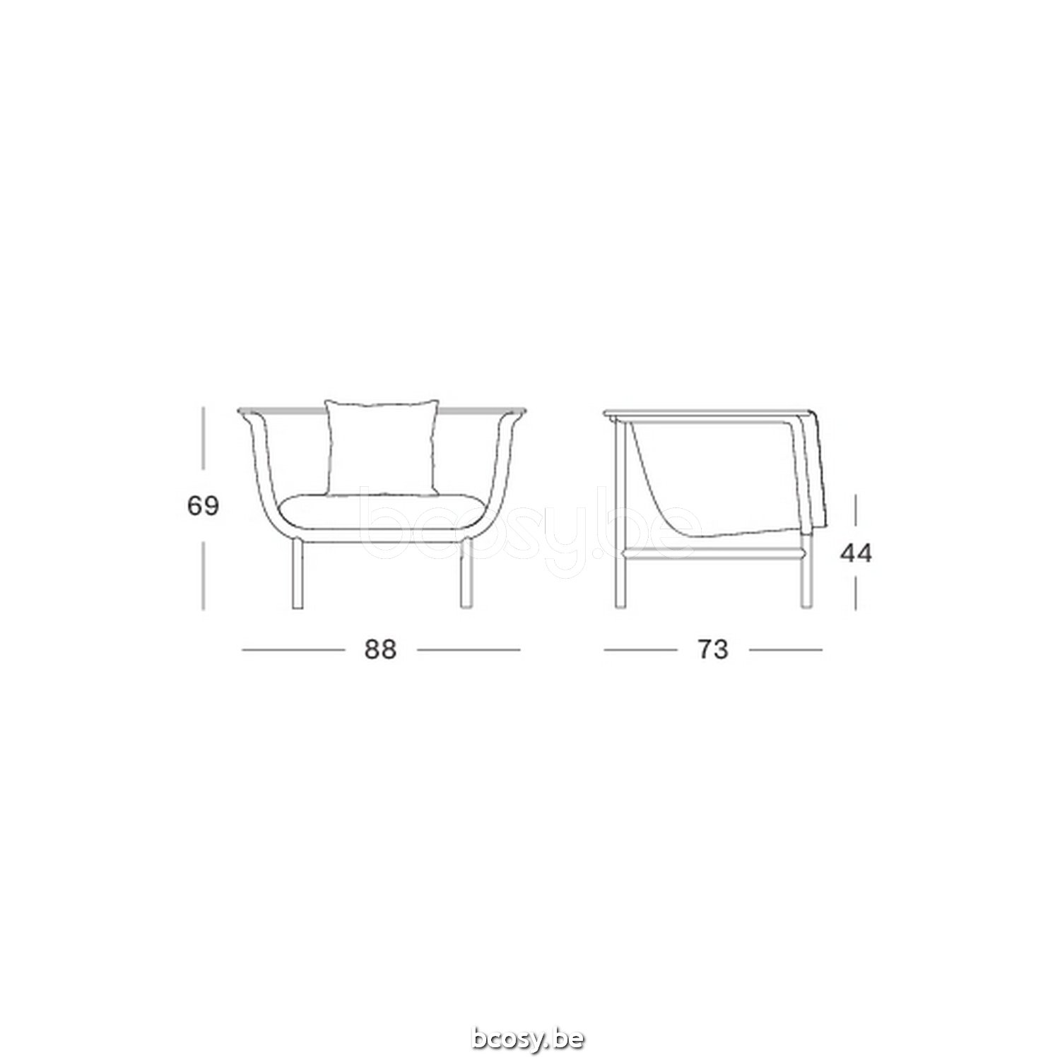 Afmetingen/Dimensions/Dimensionen: L=88 cm B=73 cm H=69 cm SH=44 cm AH=69 cm