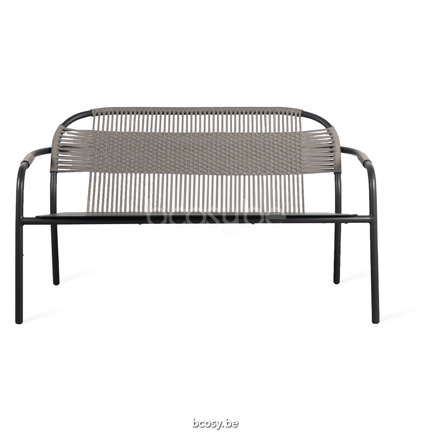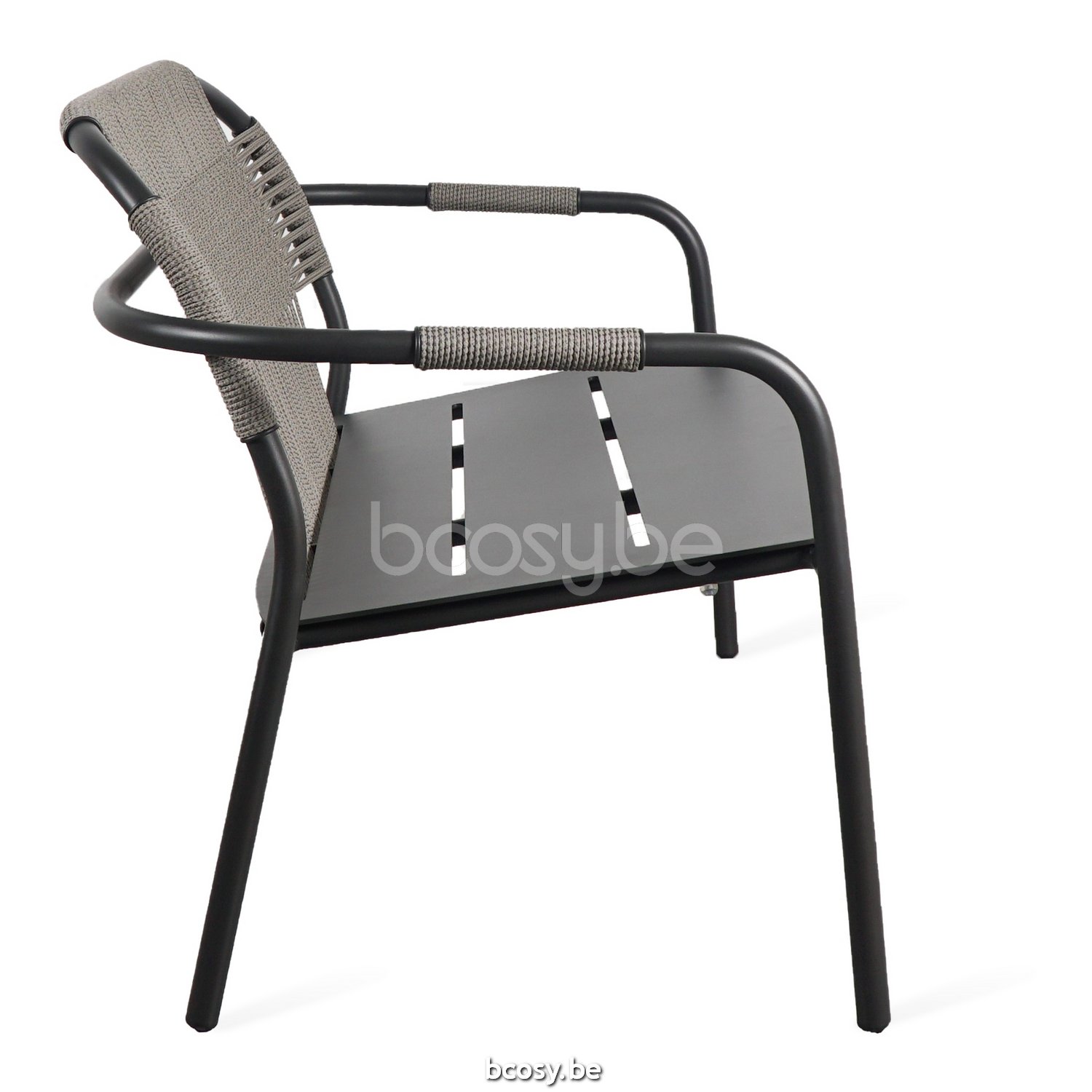 Matériel: Corde en polypropylène sur un cadre en aluminium peint par poudrage. Empilable pour max. 2 canapés. Manipuler avec précaution pour éviter tout dommage.