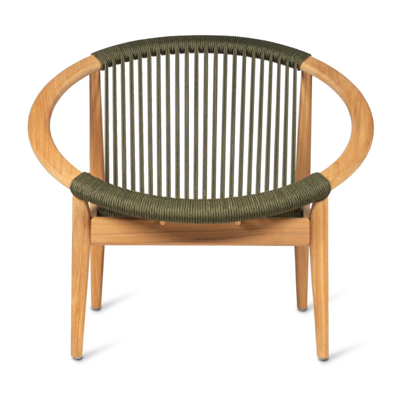 English: Vincent Sheppard Frida Lounge Chair Untreated Teak frame Dark Green Rope Polypropylene