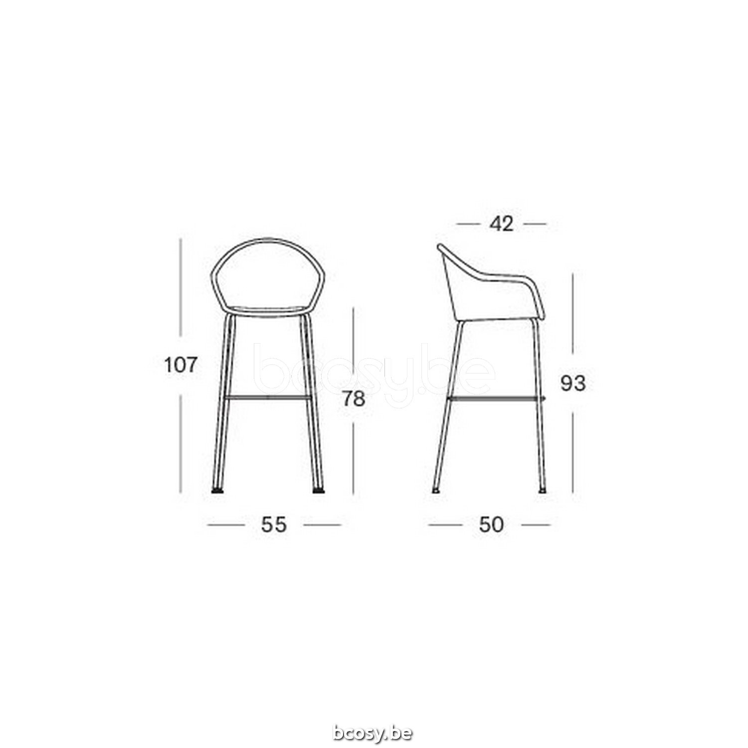 Afmetingen/Dimensions/Dimensionen: L=55 cm B=50 cm H=109 cm SH=80 cm AH=95 cm