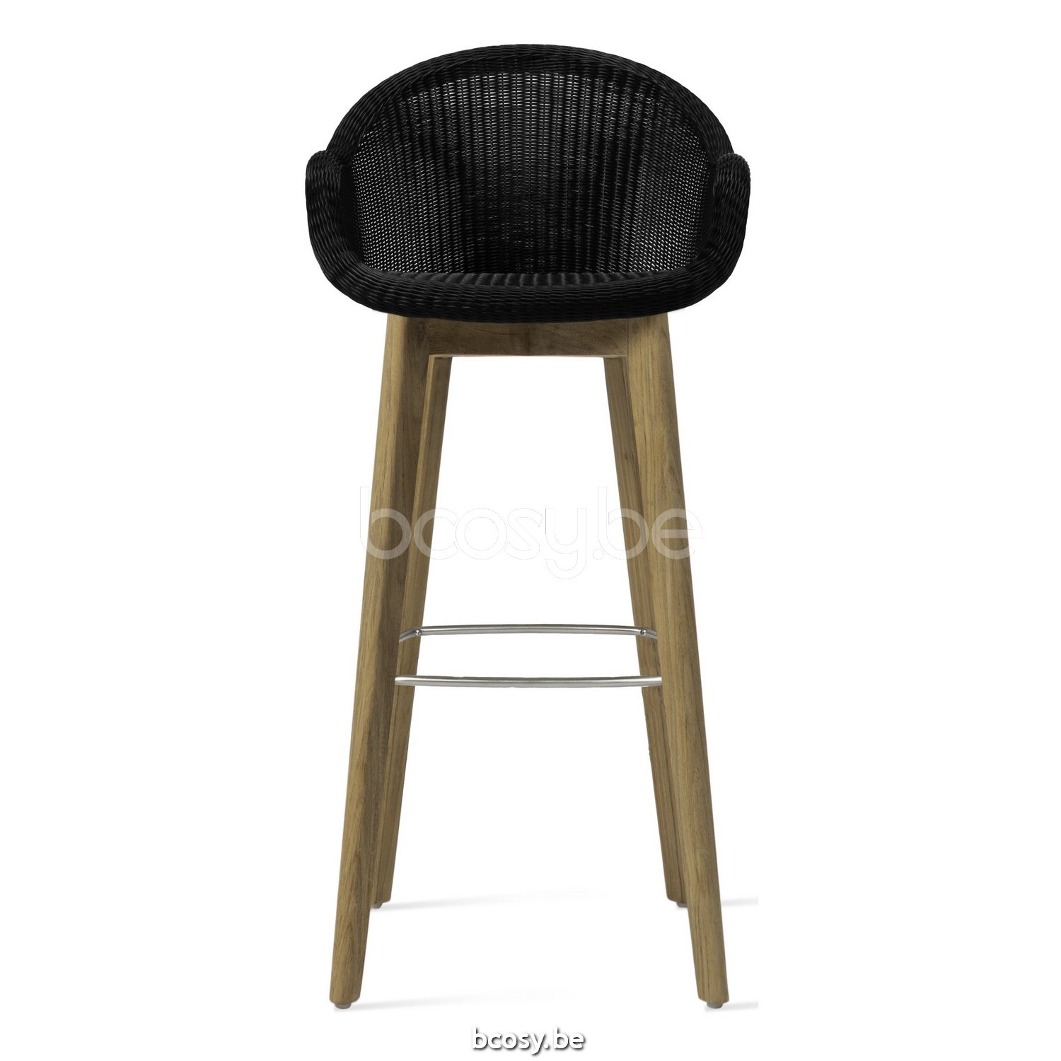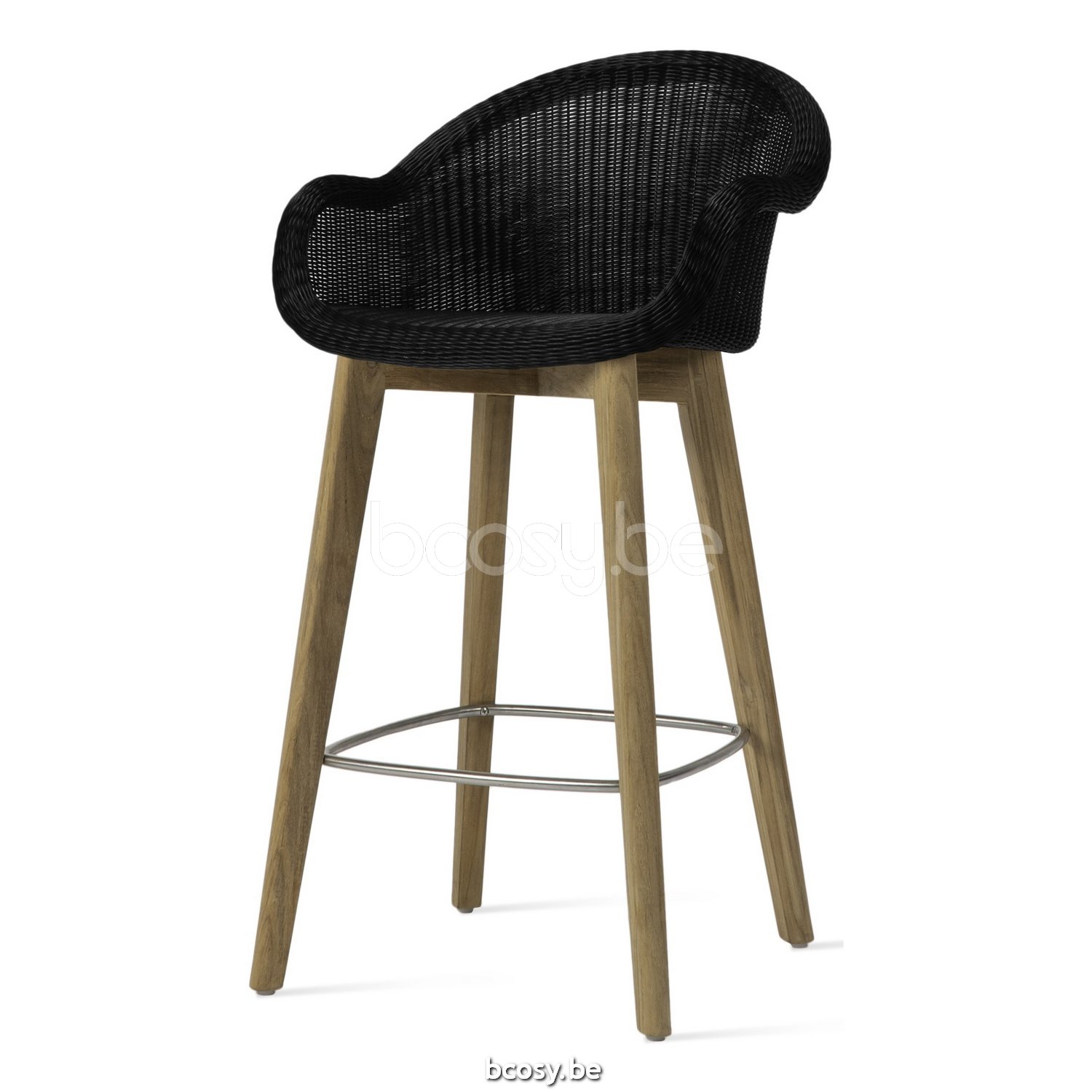 English: Vincent Sheppard Edgard Bar Stool Untreated teak frame Black Wicker Polyethylene
