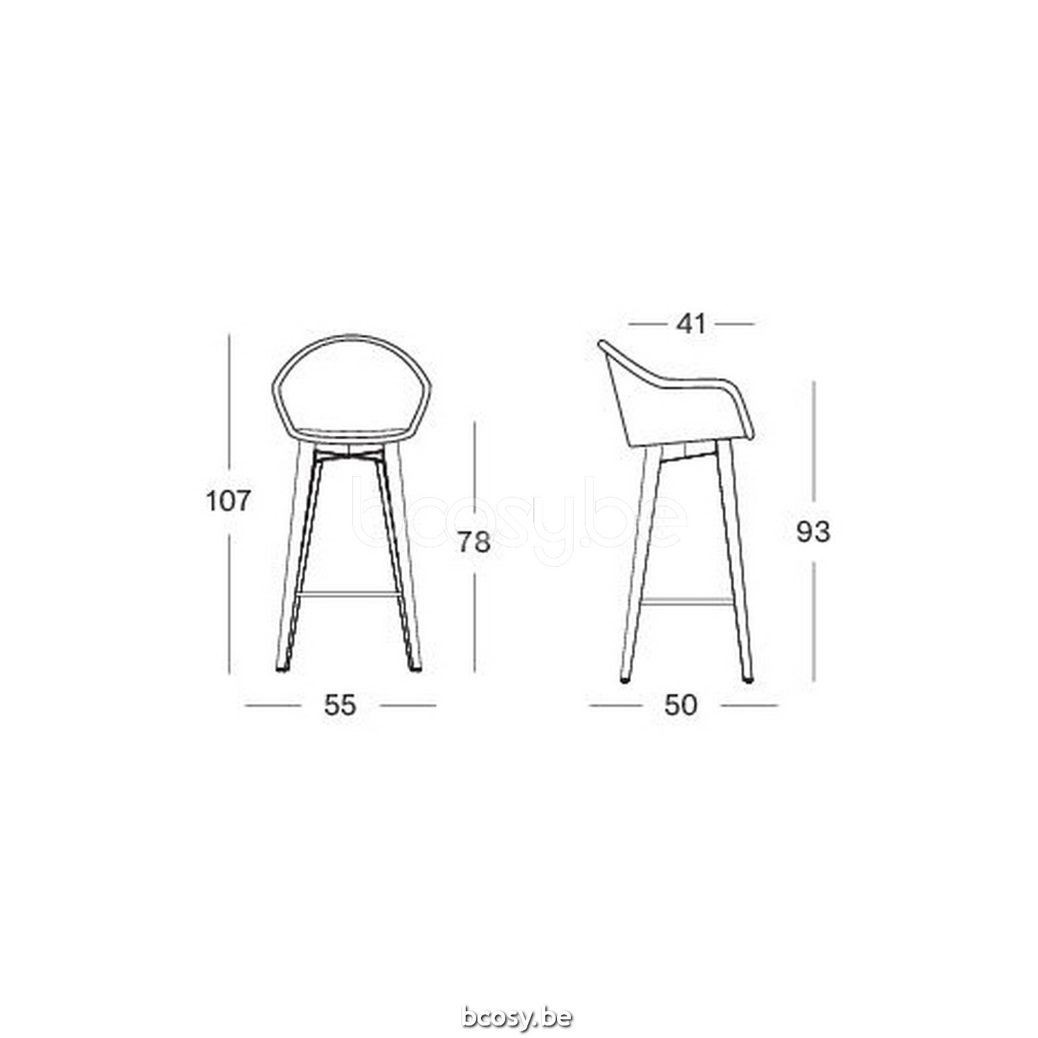 Afmetingen/Dimensions/Dimensionen: L=55 cm B=50 cm H=107 cm SH=93 cm SD=41 cm