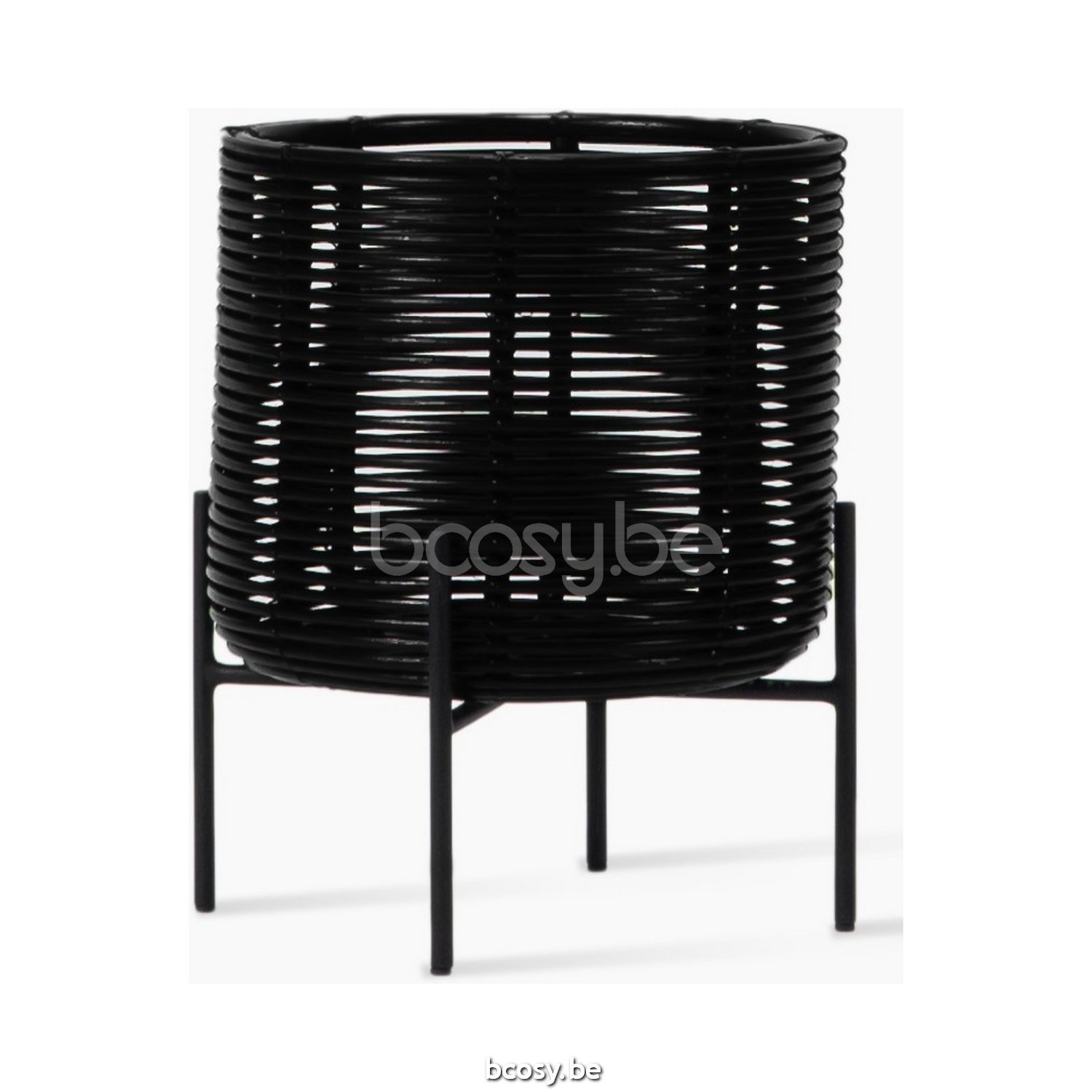 Materiaal: Zwart gepoedercoat stalen frame met HDPE rieten plantenmand. Plastic schotel inbegrepen.