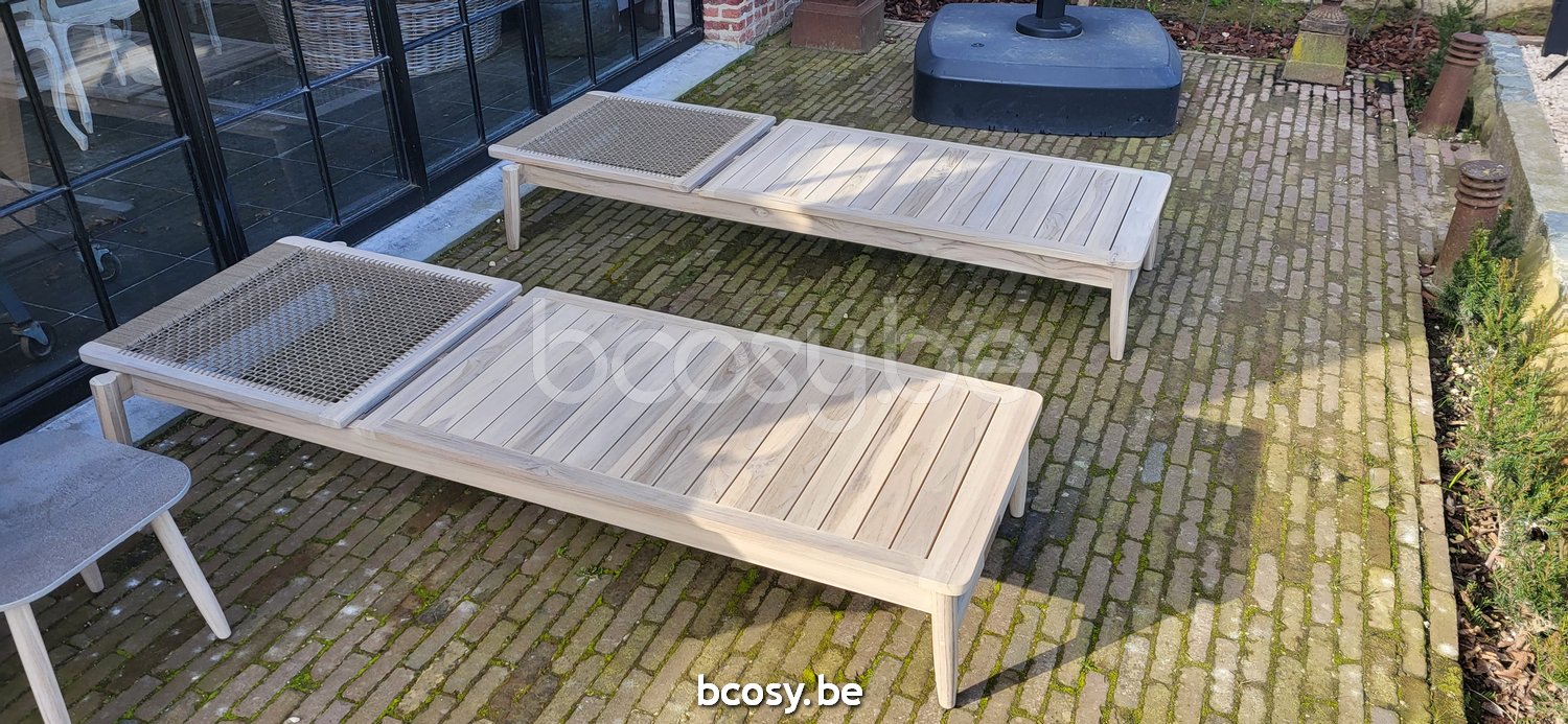 English: Vincent Sheppard David Sunlounger Aged Teak frame Greige Rope Polypropylene