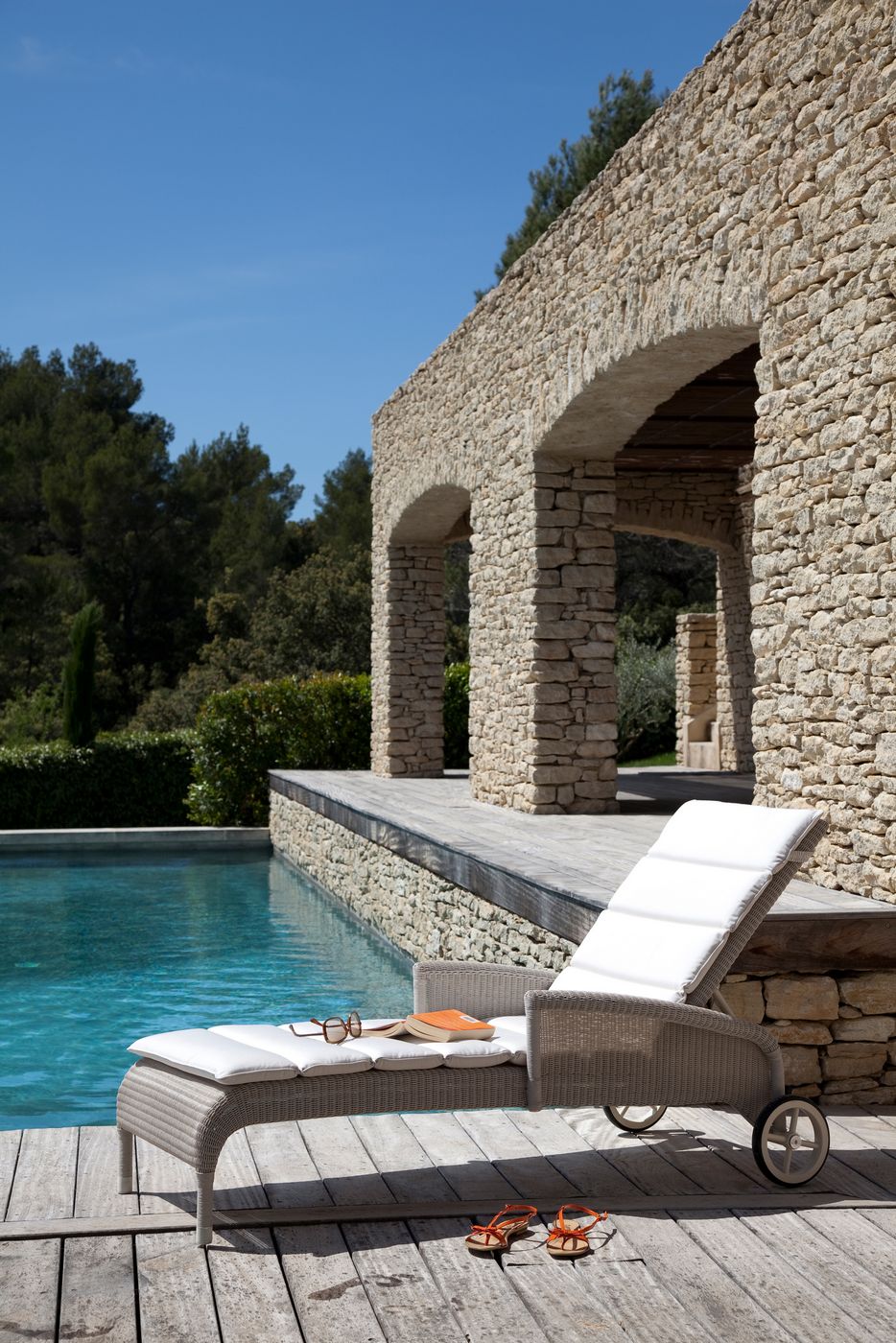 Deutsch: Vincent Sheppard Safi Sonnenliege mit Armlehnen Alte Spitze Flechtwerk Polyethylen