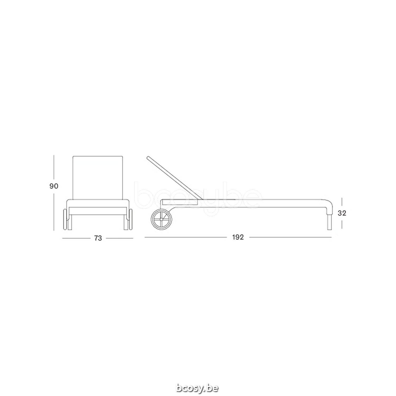 Afmetingen/Dimensions/Dimensionen: L=73 cm B=192 cm H=90 cm SH=32 cm