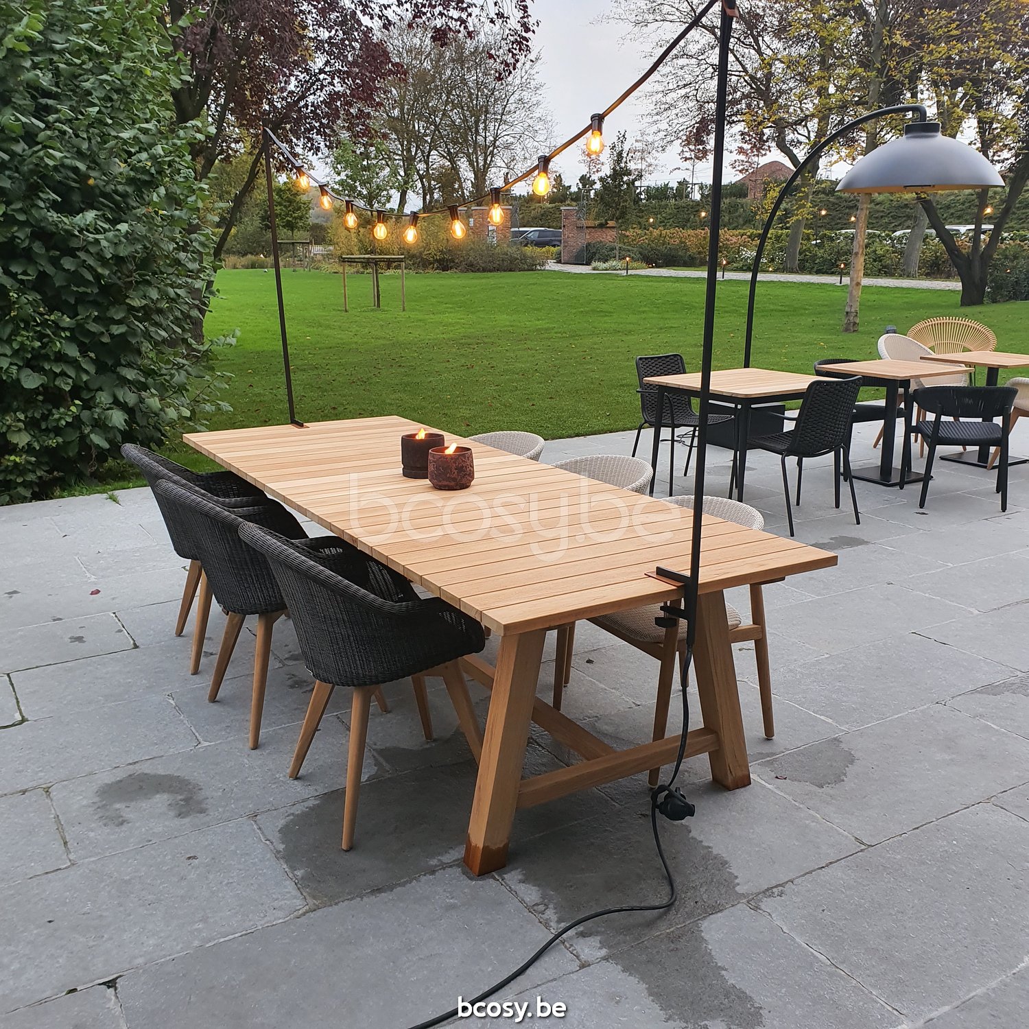 Matériel: Tressage en polyéthylène sur un cadre en aluminium et une base en teck massif non traité.