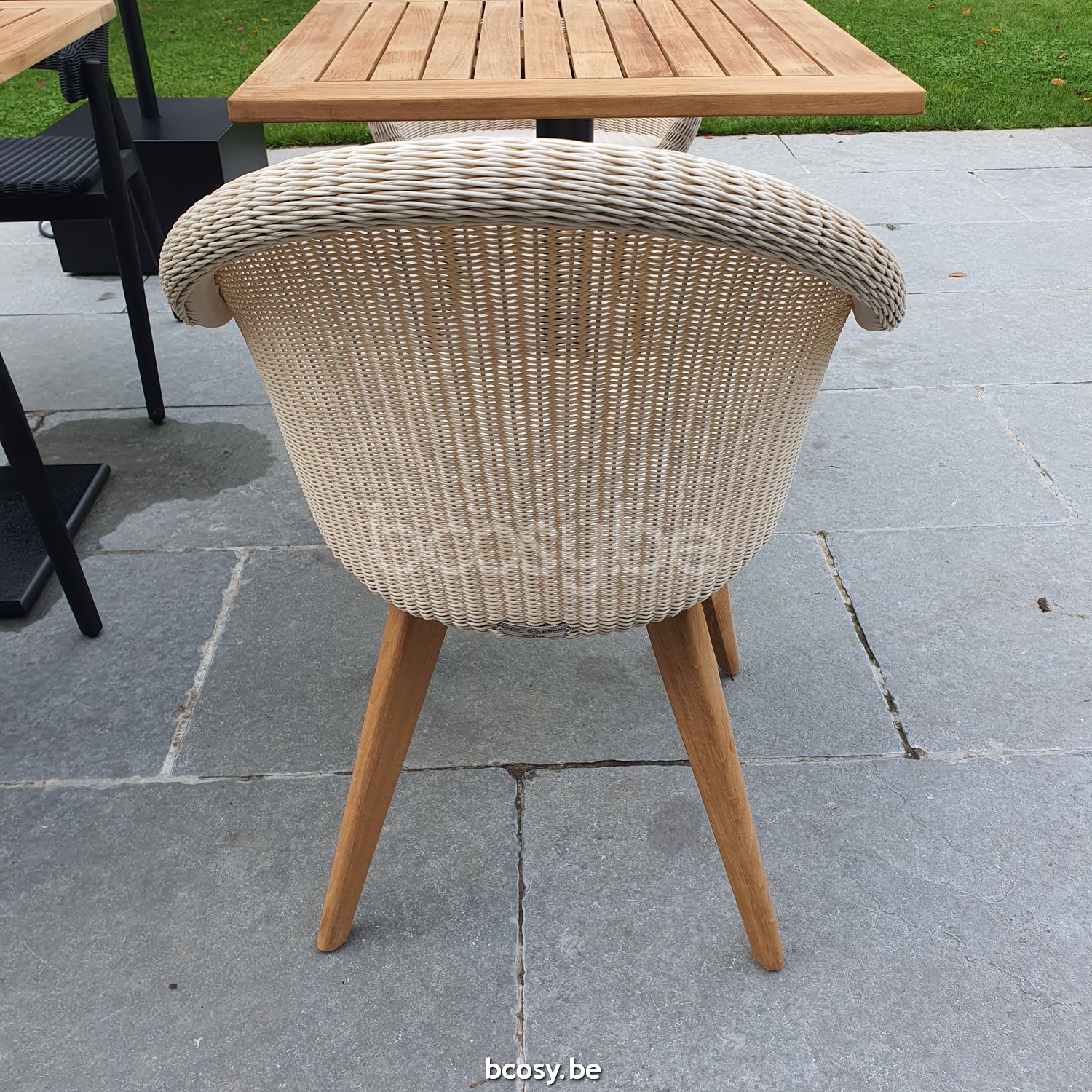 English: Vincent Sheppard Edgard Dining Chair Untreated teak frame Old Lace Wicker Polyethylene
