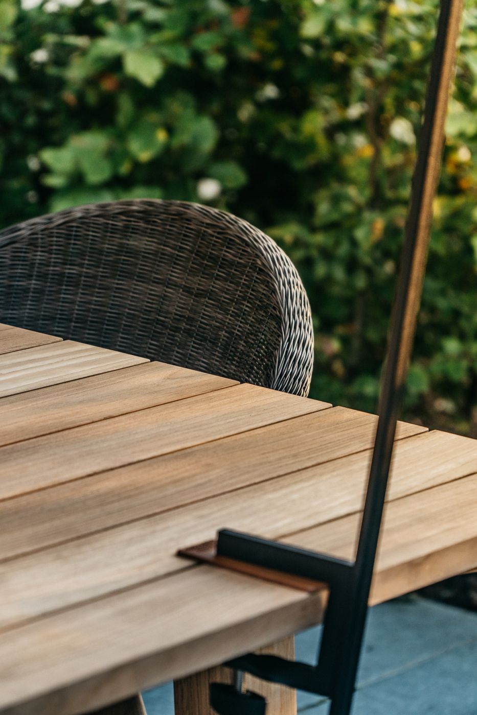 Materiaal: Polyethyleen wicker vlechtwerk op een aluminium frame en een epoxy en gegalvaniseerd zwart gepoedercoat stalen onderstel.