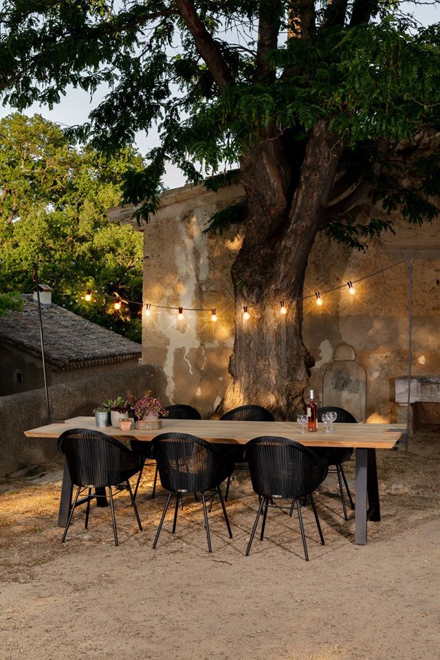 Matériel: Tressage en polyéthylène sur un cadre en aluminium et une base en acier peint par poudrage noir époxy et galvanisé.