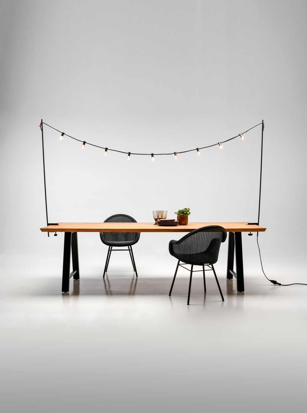Français: Vincent Sheppard Edgard Chaise Cadre en Acier A Revêtement en poudre noir Tressage Noir Polyéthylène