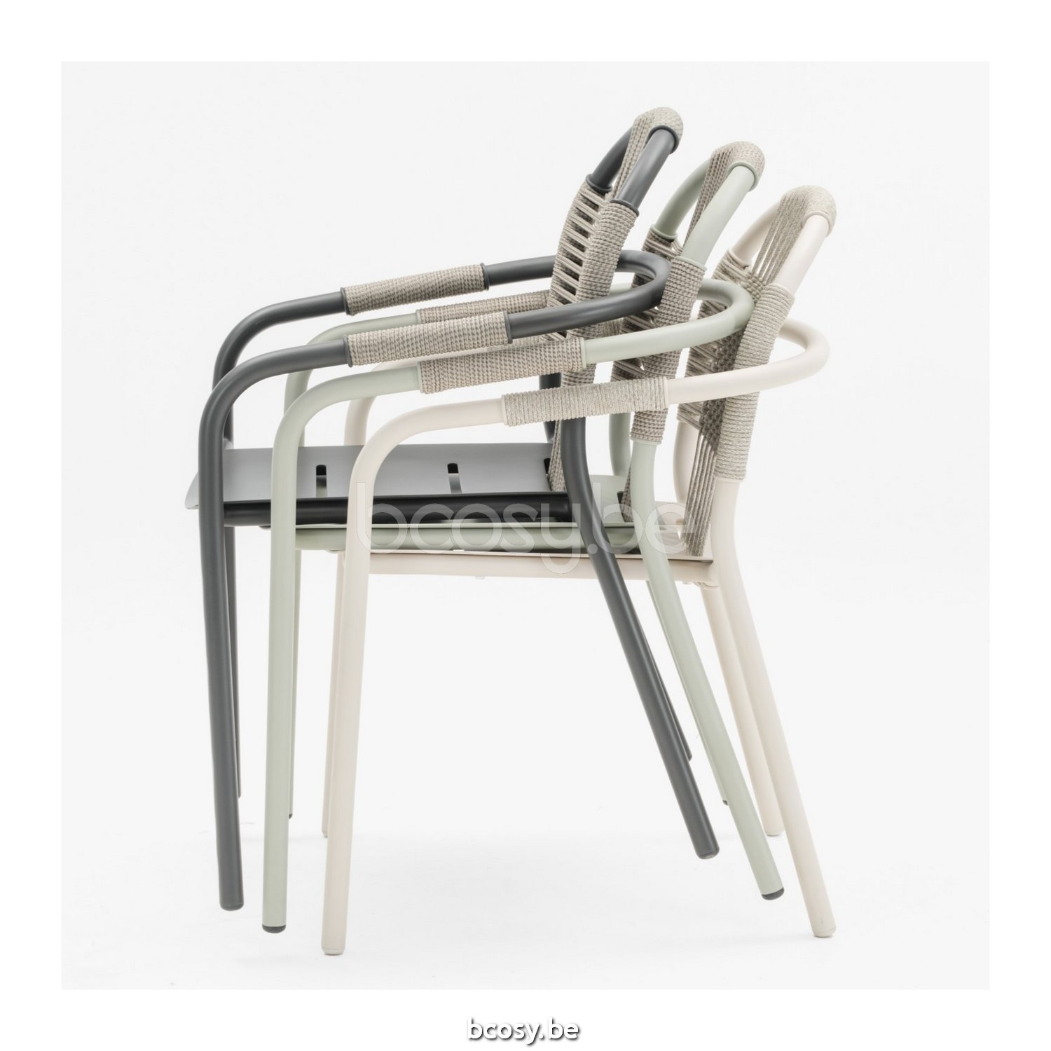 Matériel: Corde en polypropylène sur un cadre en aluminium peint par poudrage. Empilable pour max. 4 chaises. Manipuler avec précaution pour éviter tout dommage.