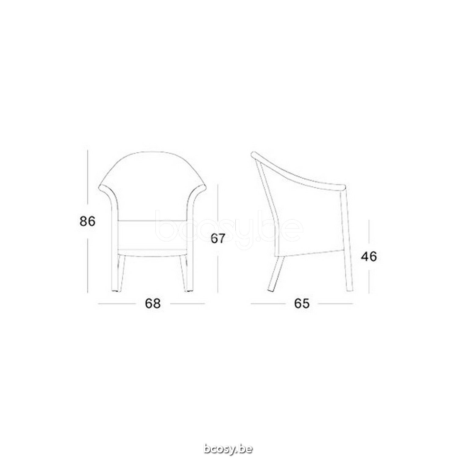 Afmetingen/Dimensions/Dimensionen: L=68 cm B=70 cm H=82 cm SH=45 cm AH=71 cm
