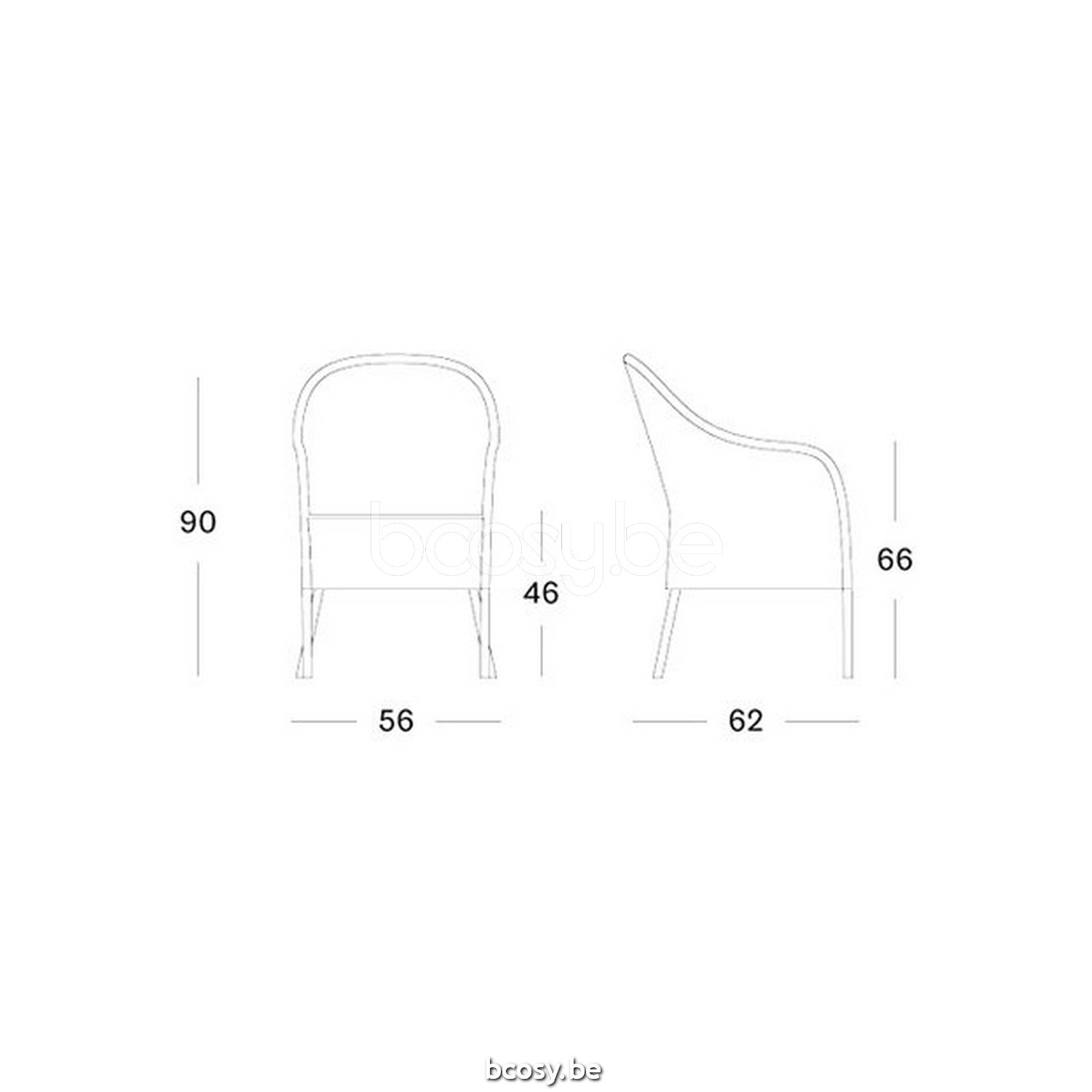 Afmetingen/Dimensions/Dimensionen: L=56 cm B=62 cm H=90 cm SH=46 cm AH=66 cm