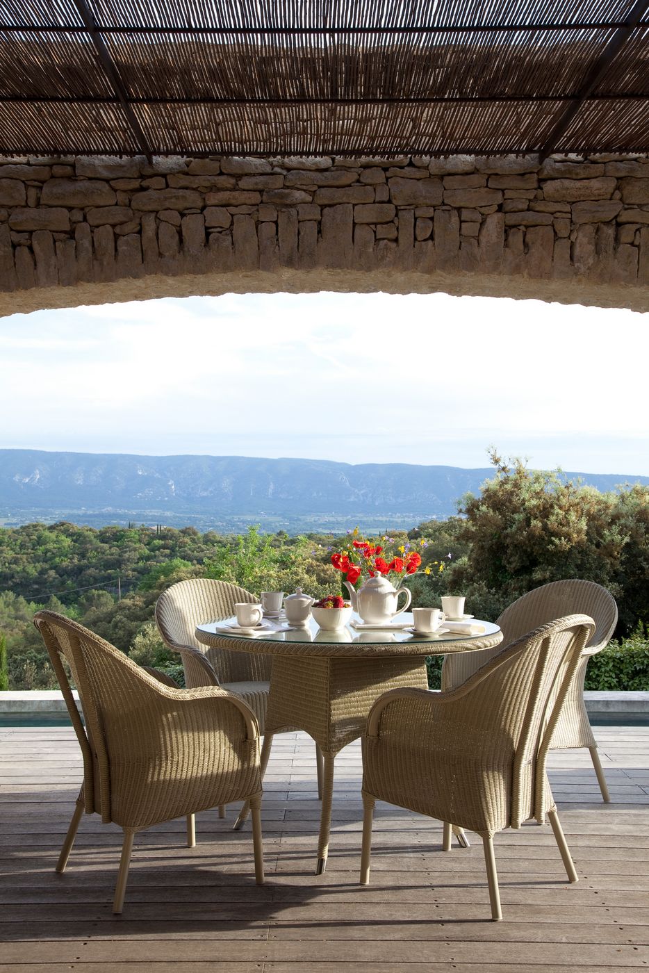 Material: Outdoor treated Lloyd Loom weave on an aluminium frame. Should be stored indoors during humid and cold weather.